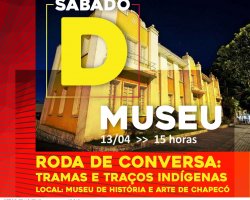 Para este sábado, a programação será uma Roda de Conversa: Tramas e Tratos Indígenas. A atividade acontecerá no Museu de História e Arte de Chapecó, próximo a Praça Coronel Bertaso, das 15 às 16h30. O objetivo é reunir neste espaço aqueles que desejam compartilhar seus saberes, discutindo a cultura indígena e assim contribuindo com a preservação das memórias dos primeiros habitantes de nossa região. O Projeto Sábado D museu atrai para si parte da responsabilidade de dialogar com outros meios e acrescentar novos debates ao mundo da memória e da arte.