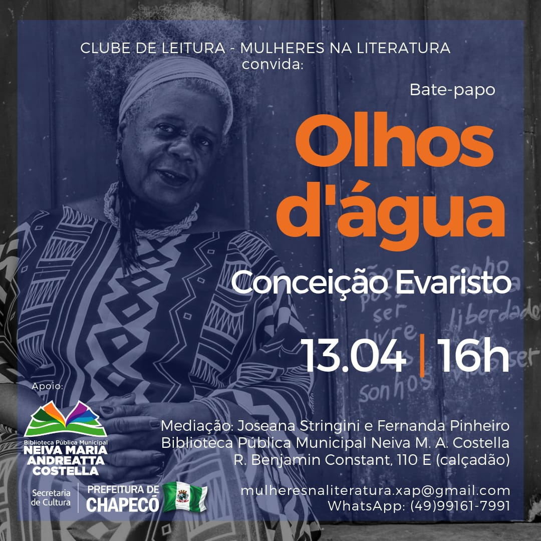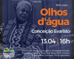 Nesta edição do sábado (13), a partir das 16 horas, a obra debatida será Olhos Dágua, da autora brasileira, Conceição Evaristo. Uma autora que vem tendo bastante destaque e esta obra dela está sendo cobrada, inclusive em vestibulares. É uma oportunidades para trazer um pouco de curiosidades sobre esta obra que é muito chocante e emocionante, explicou. Caroline explica ainda que você não necessariamente precisa ter lido o livro para participar do Clube de Leitura, é uma oportunidade para conhecer a obra e posteriormente ler o material que está disponível na Biblioteca Pública.