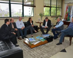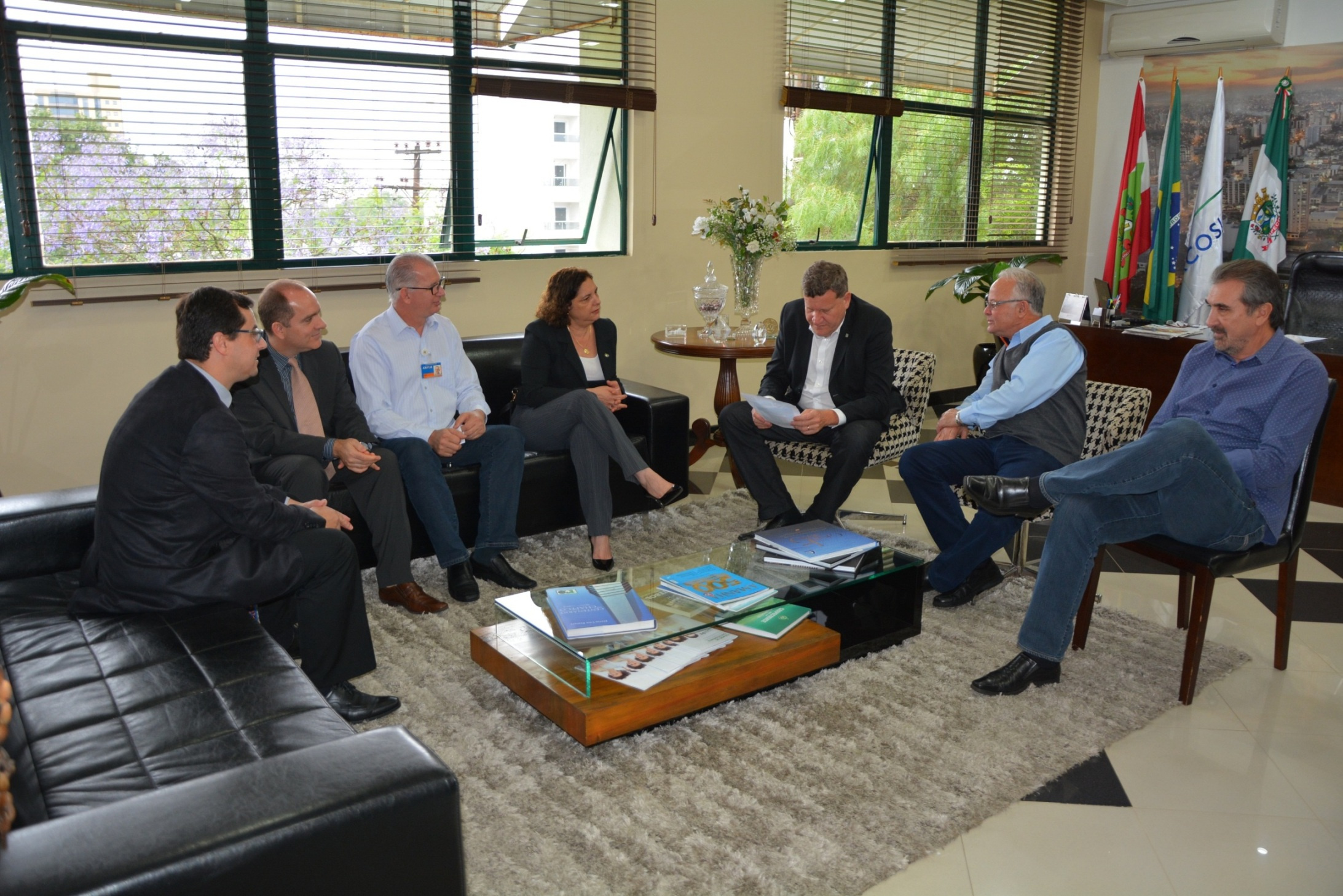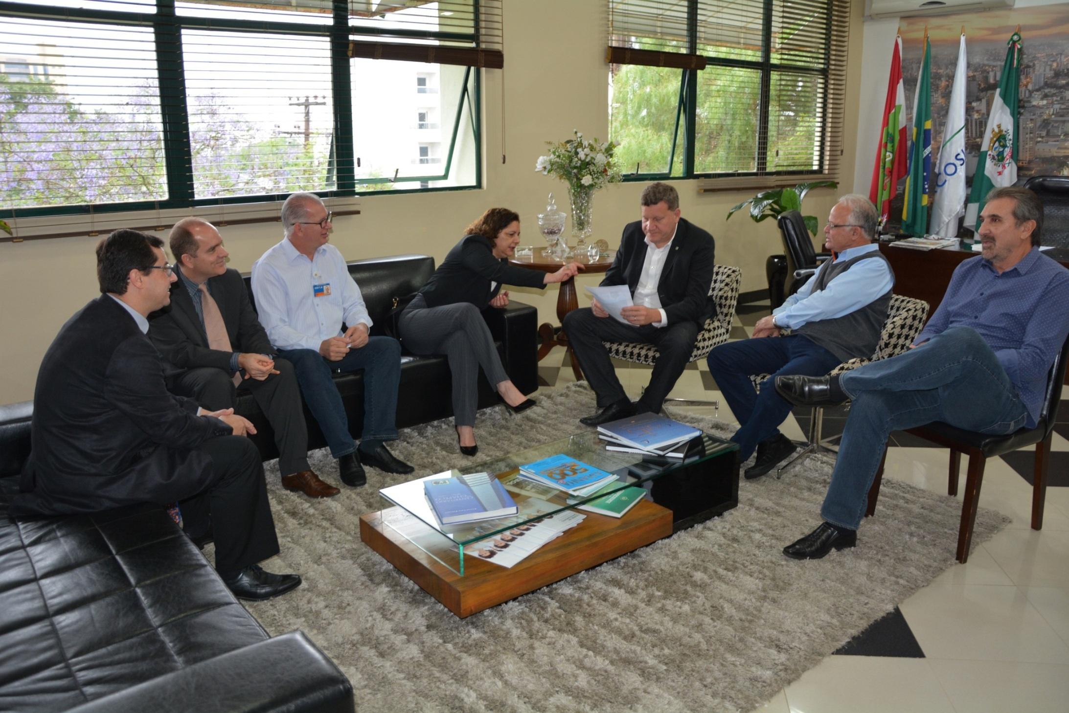 Na visita à Prefeitura de Chapecó, a superintendente Maria Claudia Sakai estava acompanhada dos gerentes Cleiton Beje, Carlos Alberto Bonin e Elias Lazaris, além do assessor de comunicação Lauro Hennemann.