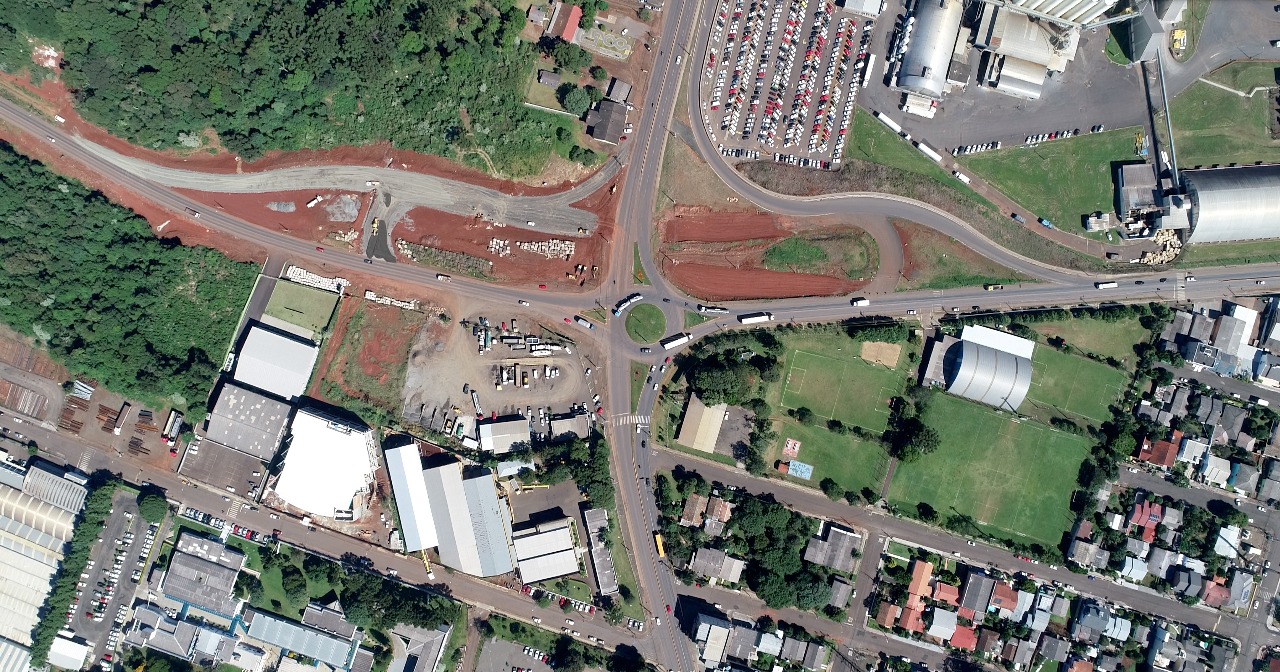 Rota 1 Desvio à direita na Rótula do Chuveirinho (onde há a entrada da BRF para os caminhões) entrando na Vila Mantelli pela rua Ernesto Braun sai na rua Francisco Relou corta o Contorno Viário Oeste cai na rua Mascarenha de Morais até a rotatória do Brasão.