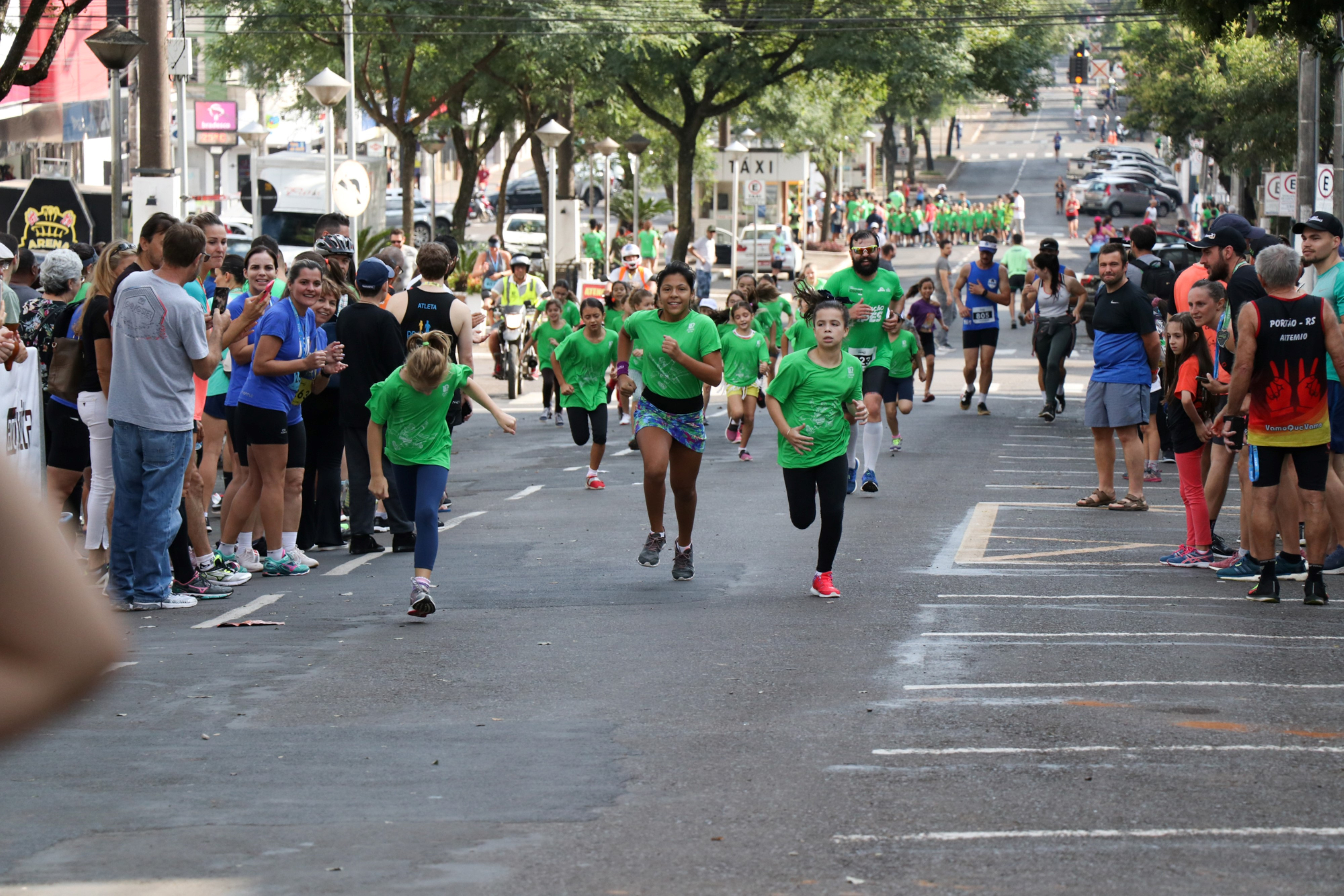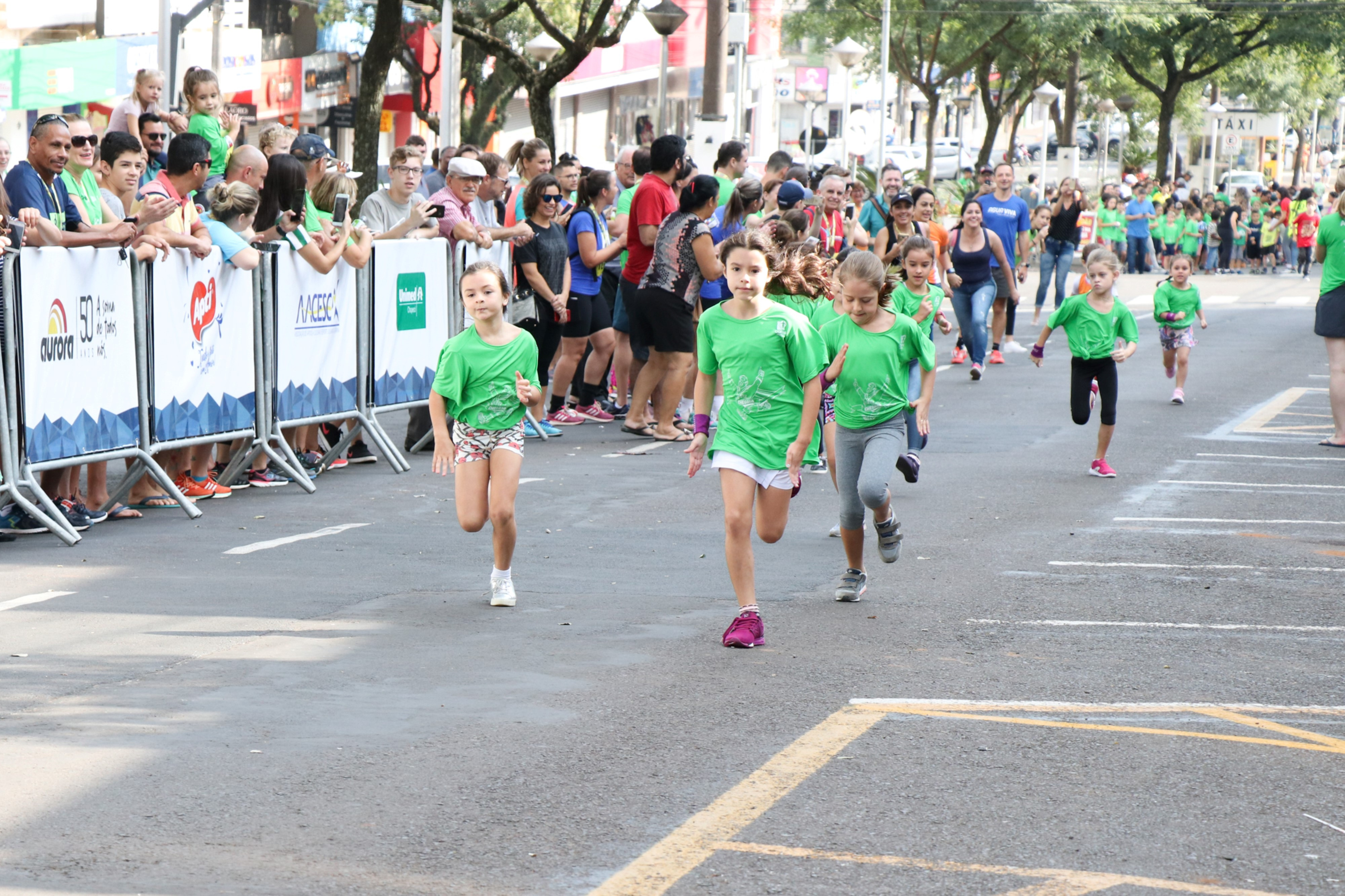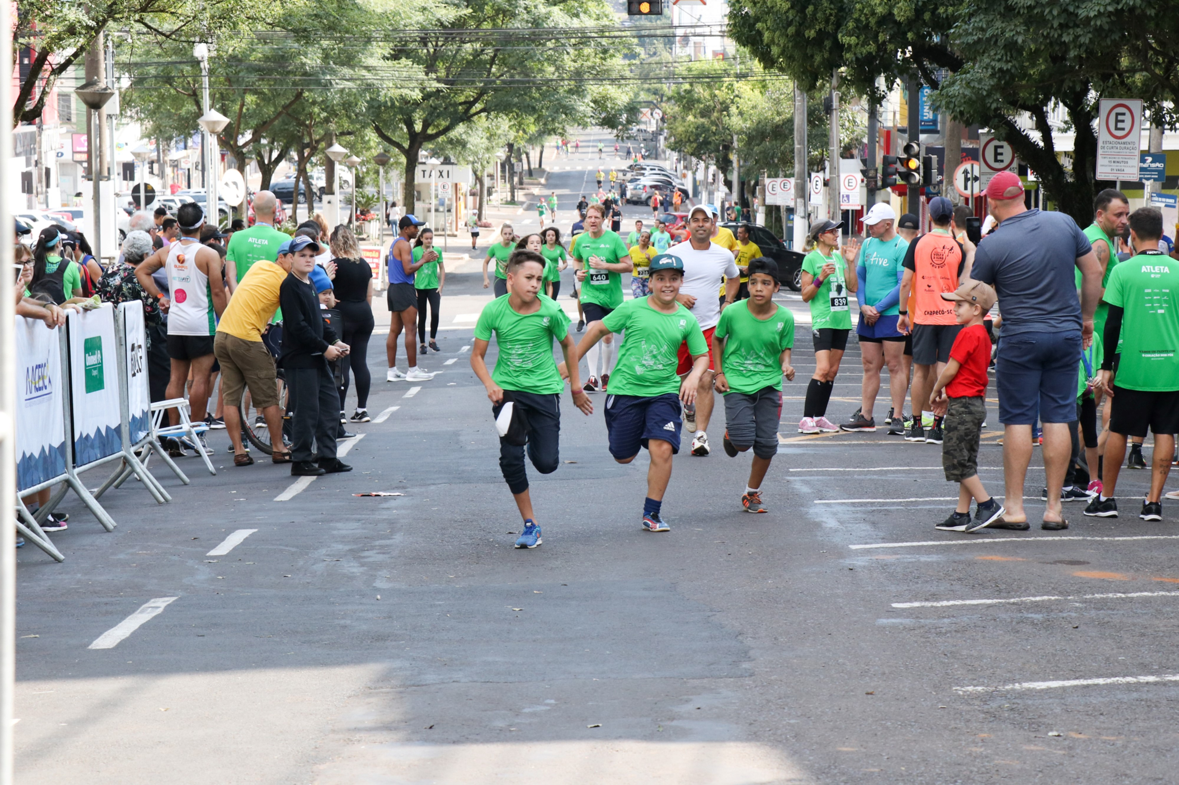 Chapecó, 15/04/2019, segunda-feira Cerca de 100 crianças, alunos da Rede Municipal de Ensino de Chapecó participaram no domingo (14) da Meia Maratona de Chapecó. Foram 50 alunos da Escola Básica Municipal Hebert de Souza, com idade entre 05 a 10 anos e mais 50 da Escola Básica Municipal Sereno Soprana, com idade de 11 a 14 anos. A empresa organizadora do evento disponibilizou de forma gratuita 100 vagas com o objetivo de incentivar a prática esportiva.