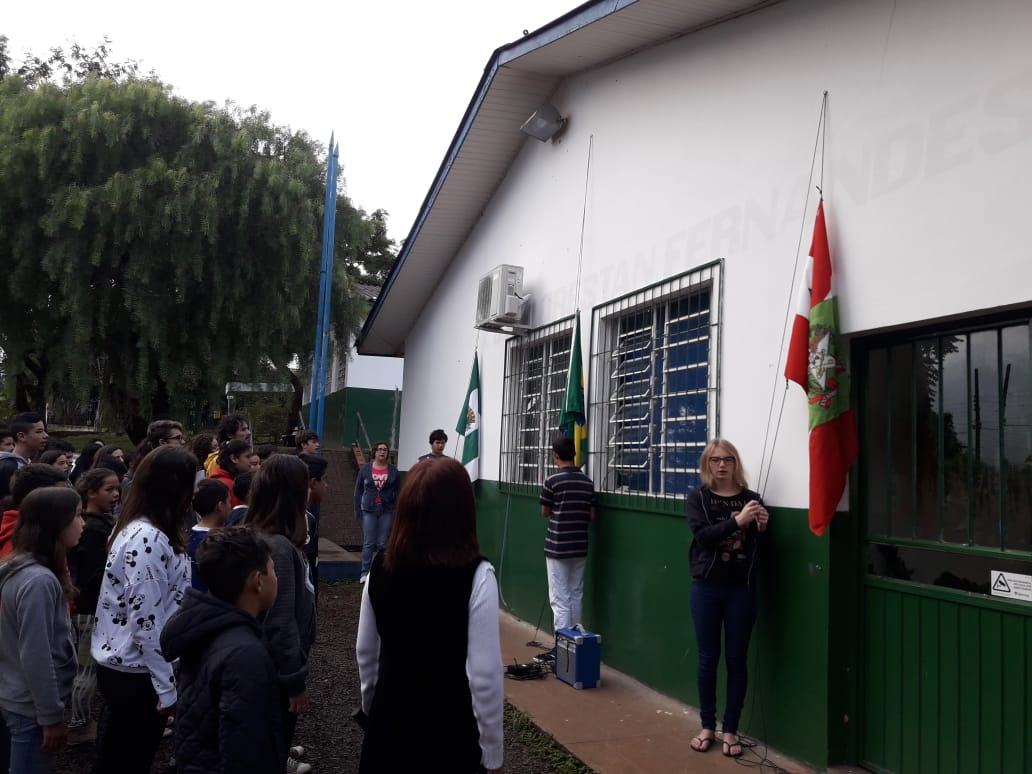 § 1º O hasteamento das Bandeiras do Brasil, do Estado de Santa Catarina e do Município e a execução dos Hinos Oficiais do Brasil e do Estado de Santa Catarina dar-se-á no início das atividades nas Instituições Educativas da Rede Municipal, nos períodos matutino, vespertino e noturno, objetivando abranger todos os alunos regularmente matriculados.