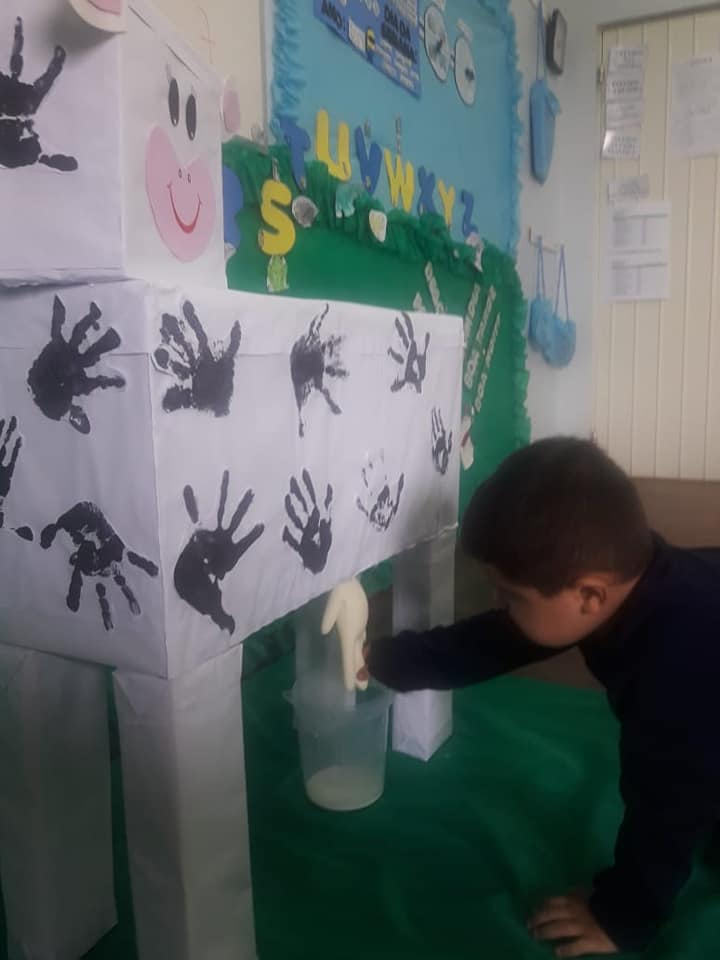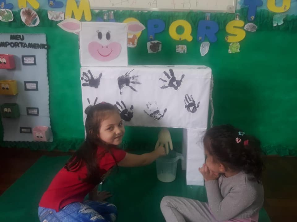 Além disso, foram trabalhadas atividades de contação de histórias, música, confecção de cartazes. Também organizaram a visita de um coelhinho para que as crianças tivessem contato com esse bichinho e observassem como é seu comportamento.Para encerrar o projeto foi confeccionado, com caixas, uma vaca para que as crianças tirassem o leite dela e tivessem essa experiência. Depois a professora fez geladinho de leite para que as crianças degustassem. De acordo com a professora Leila Remus, as crianças participaram ativamente das atividades. Eles pintaram sua própria mão para fazer as manchas da pele (couro) da vaca e quando chegavam na sala foi possível ver a curiosidade da maioria das crianças, pois perguntavam ansiosas: - é a vaca prof! - esse é o rabo da vaca!, explicou. Depois disso, estudaram de onde vem o leite e qual é o processo do leite até chegar ao supermercado. O objetivo da aula foi alcançado, comentou a professora.