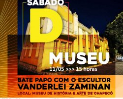 Para este sábado, às 15 horas terá um "Bate papo com o escultor VANDERLEI ZAMINAN". Ele é artista visual autodidata, atuante no município de Chapecó e reconhecido por explorar temáticas relacionadas a conscientização ambiental por meio das artes. De acordo com Ricardo Garlet, coordenador do setor de Patrimônio Cultural da Secretaria de Cultura de Chapecó, na constituição de suas esculturas, o artista recupera resíduos sólidos, discutindo as possibilidades criativas para o descarte consciente do lixo na elaboração de novos produtos. A postura crítica do seu processo revela a necessidade de manutenção dos recursos naturais e consequentemente a redução do impacto ambiental, resultado de uma sociedade desperta e responsável.A conversa vai gerar em torno das experiências deste artista, visando fomenta diferentes dinâmicas no espaço para proporcionar o acesso da comunidade ao local, comentou Garlet.