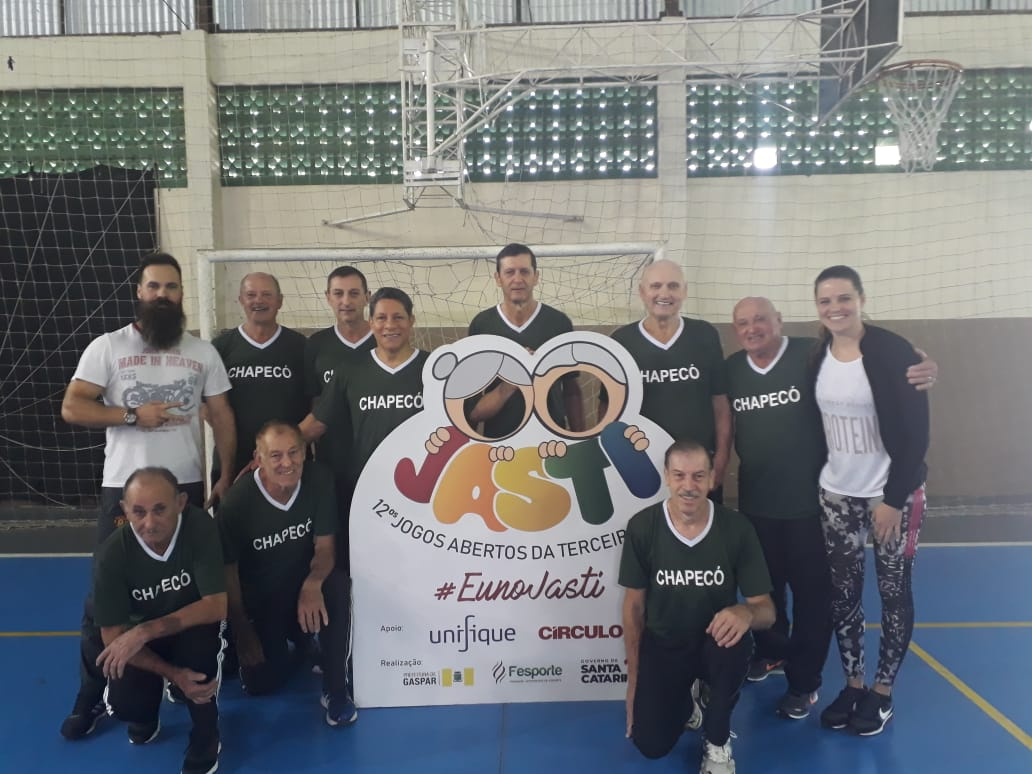 Chapecó, 22/05/2019, quarta-feira O voleibol de Chapecó iniciou bem sua estreia nos Jogos Abertos da Terceira Idade- JASTI- que este ano ocorre na cidade de Gaspar.Os times de Chapecó venceram as equipes de São Bento do Sul por 2x1, tanto no masculino quanto no feminino. É a primeira experiência do voleibol de Chapecó na competição.