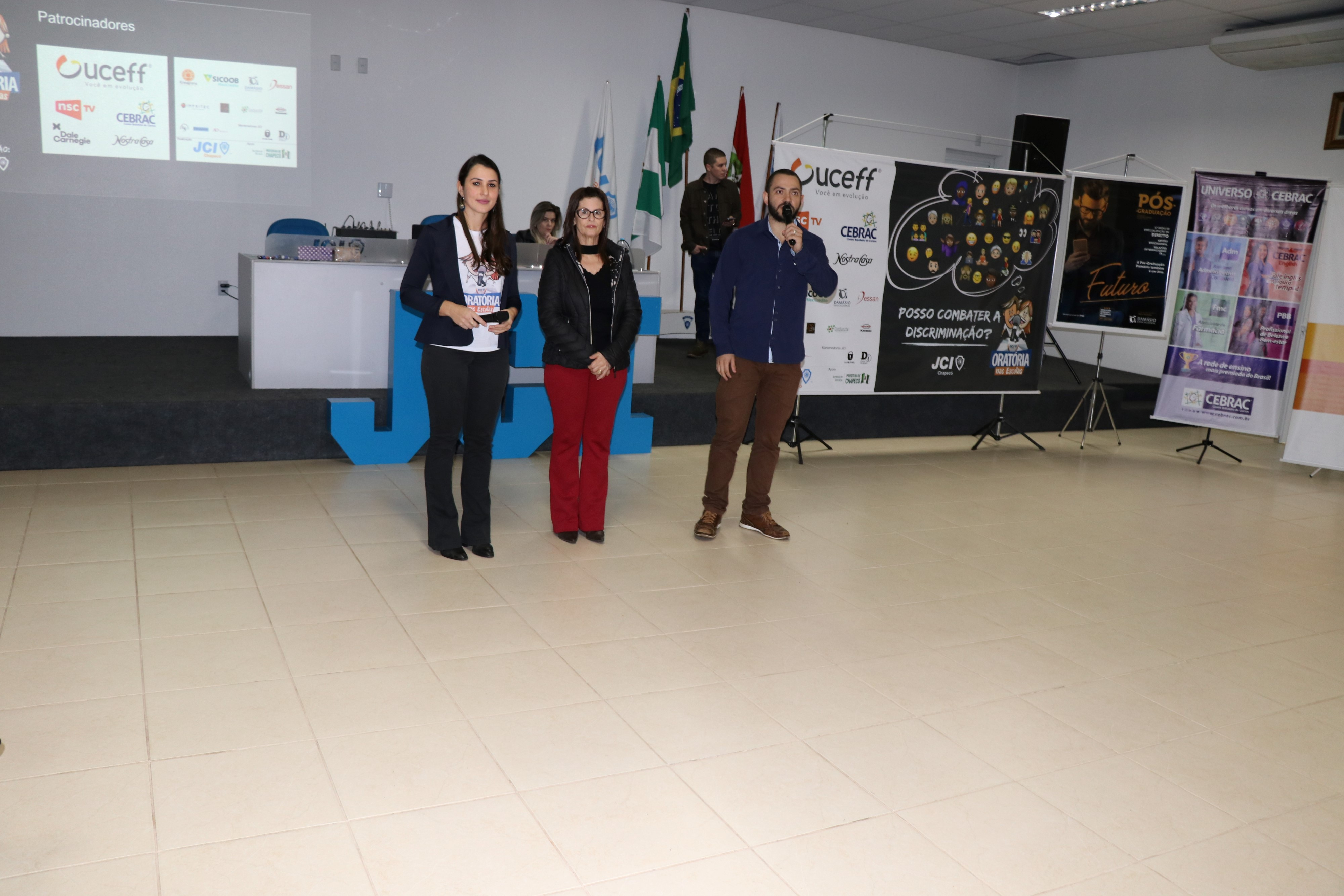 Chapecó, 22/05/2019, quarta-feira A Administração Municipal, por meio da Secretaria de Educação, em parceria com a JCI (Junior Chamber International), desenvolve o Projeto Oratória nas Escolas que, atende aproximadamente 1700 alunos de 7º e 8ºano da Rede Municipal de Ensino. Na terça-feira (21), no auditório da JCI, foi realizada cerimônia de Lançamento do Projeto Oratória nas Escolas 2019. O Projeto está em sua 11ª edição, reafirmando a sua importância no contexto escolar e comunitário.