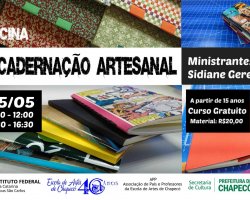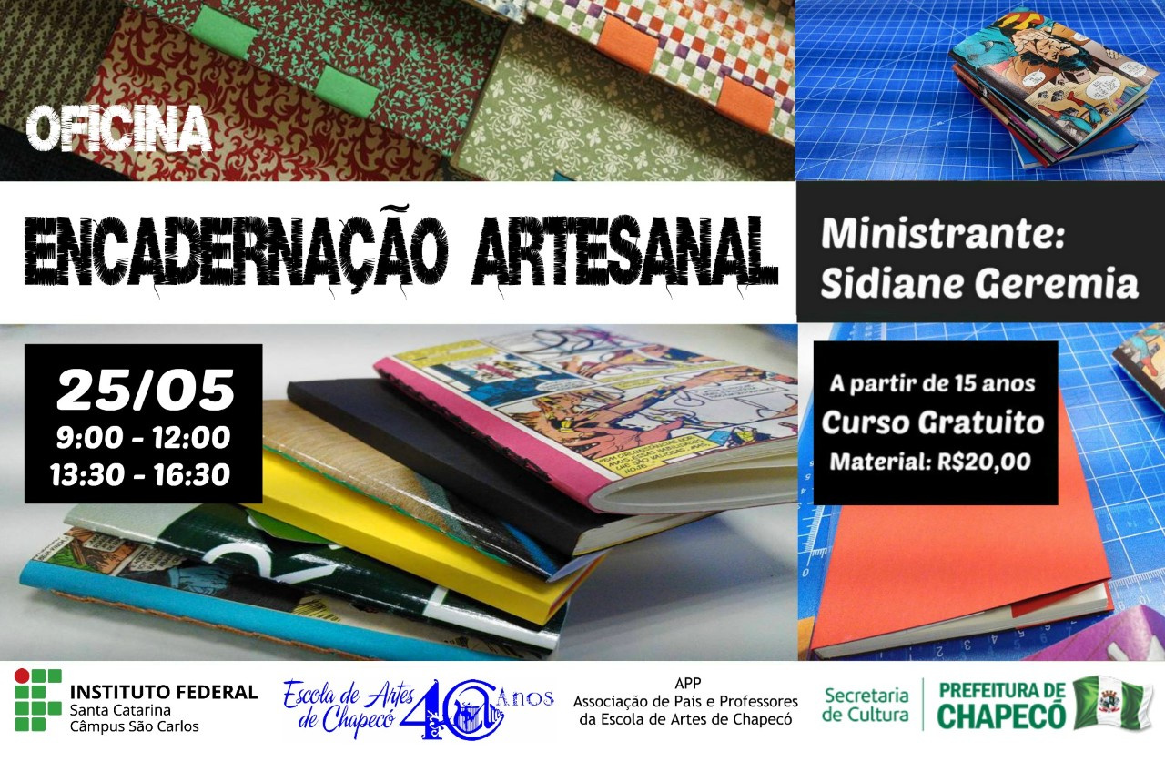 Chapecó, 24/05/2019, sexta-feira A Escola de Artes de Chapecó oferece neste sábado (25) duas oficinas: uma de Ecoprint Impressão botânica e shibori, ministrada por Luiziana Hoerbe e outra de Encadernação artesanal, ministrada por Sidiane Geremia. As atividades acontecem na Escola de Artes.