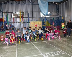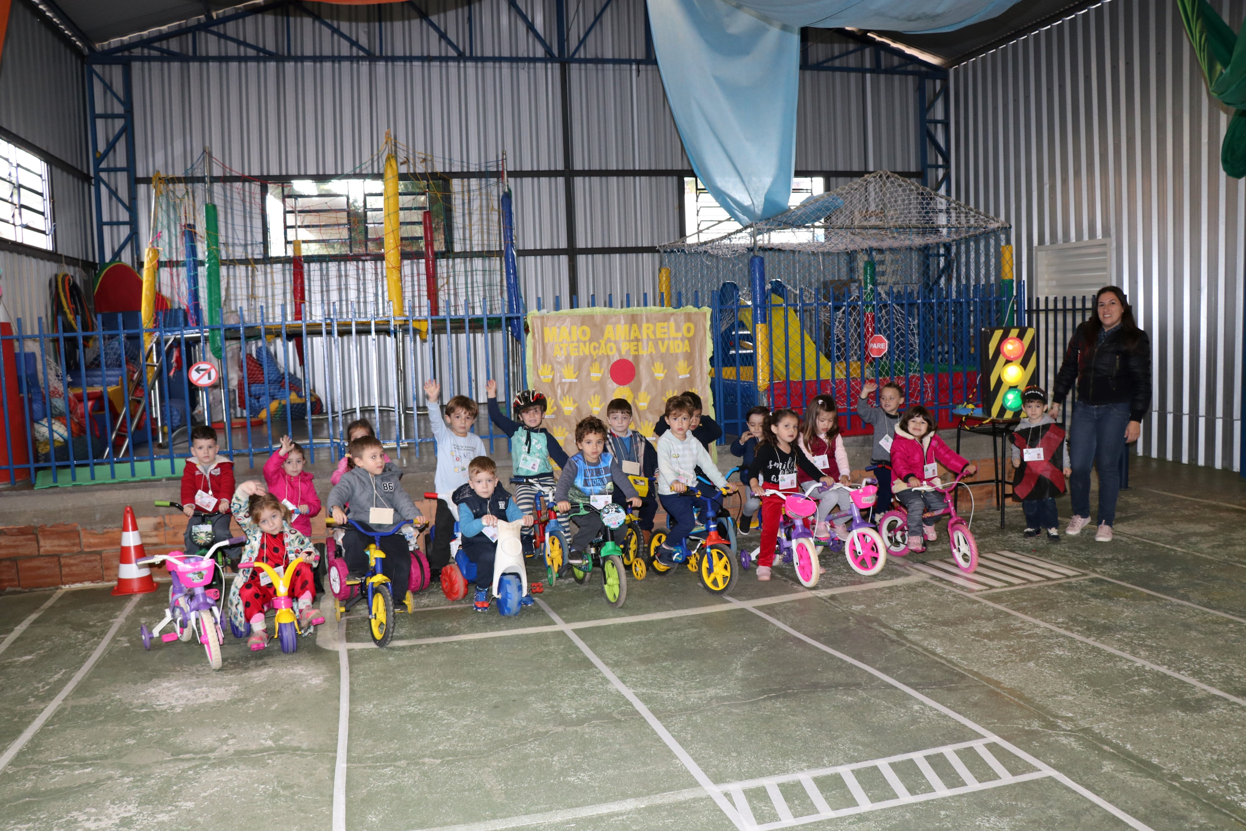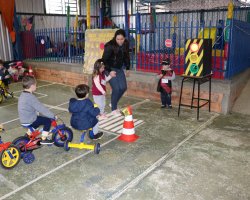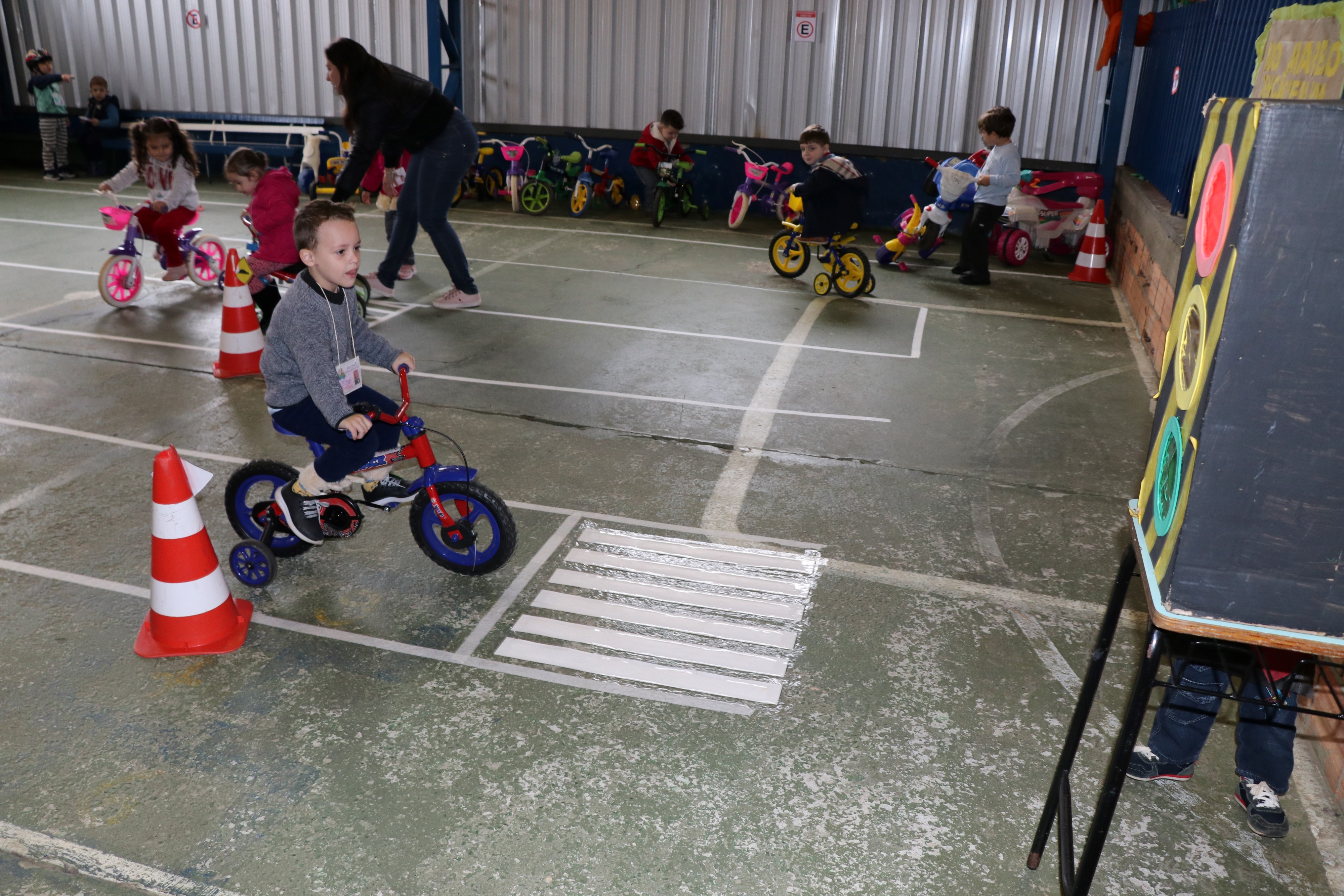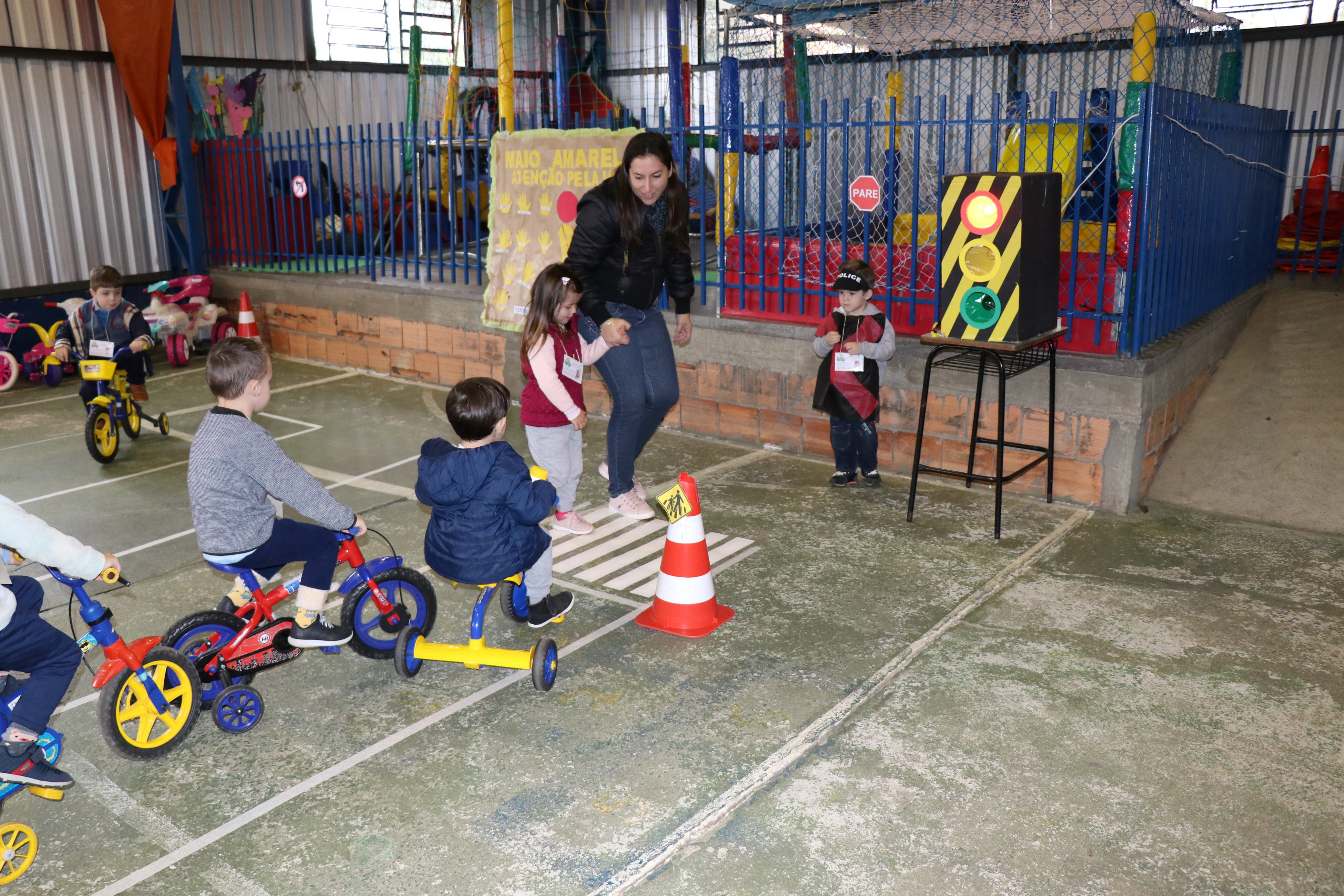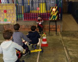 Para encerramento do projeto, a professora solicitou aos pais que trouxessem uma bicicleta para atividade prática. Foi organizado um circuito no ginásio, com um semáforo, faixa de pedestre e rua demarcada com fitas no chão. Cada criança pedalando sua bicicleta pode passar pelo circuito e colocar em prática tudo que foi trabalhado. Depois cantaram a música Bibi Fonfon! O aluno Matheus Godois, de 3 anos, aprendeu que o vermelho é para parar, o amarelo é atenção e o verde é para seguir. Já Maysa Andreoli da Silva, de 4 anos diz que quando andaram com suas bicicletas aprenderam a parar no semáforo e na faixa de segurança. Eu gostei de andar de bicicleta, eu parei ali na faixa relatou. A professora Cristine comentou ainda que os alunos demonstraram gostar de todas as atividades realizadas. Eles estavam sempre muito participativos por se tratar de um assunto que está no dia a dia deles com suas famílias, tanto que conseguiram relatar vários momentos no trânsito e perceber se estavam certos ou não, destacou.