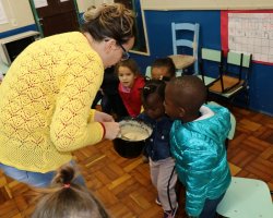 Para a Secretária de Educação de Chapecó, Sandra Maria Galera é importante desenvolver hábitos alimentares saudáveis nas crianças e estender isso nas familiares, conscientizando-os da importância de uma boa alimentação para que tenham boa saúde. O aluno Artur Berndt Giehl, de 03 anos disse que foi legal fazer o bolo. Estava bem gostoso!. A aluna Nicole Fort Pereira Putzel, de 03 anos gostou de ouvir a história. Legal a parte das comidas na cesta, disse. Já o aluno Davi Luis de Oliveira, de 4 anos, aprendeu muitas coisas. Aprendi que o leite vem da vaca e o ovo vem da galinha, comentou.