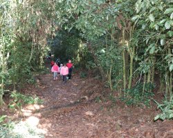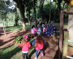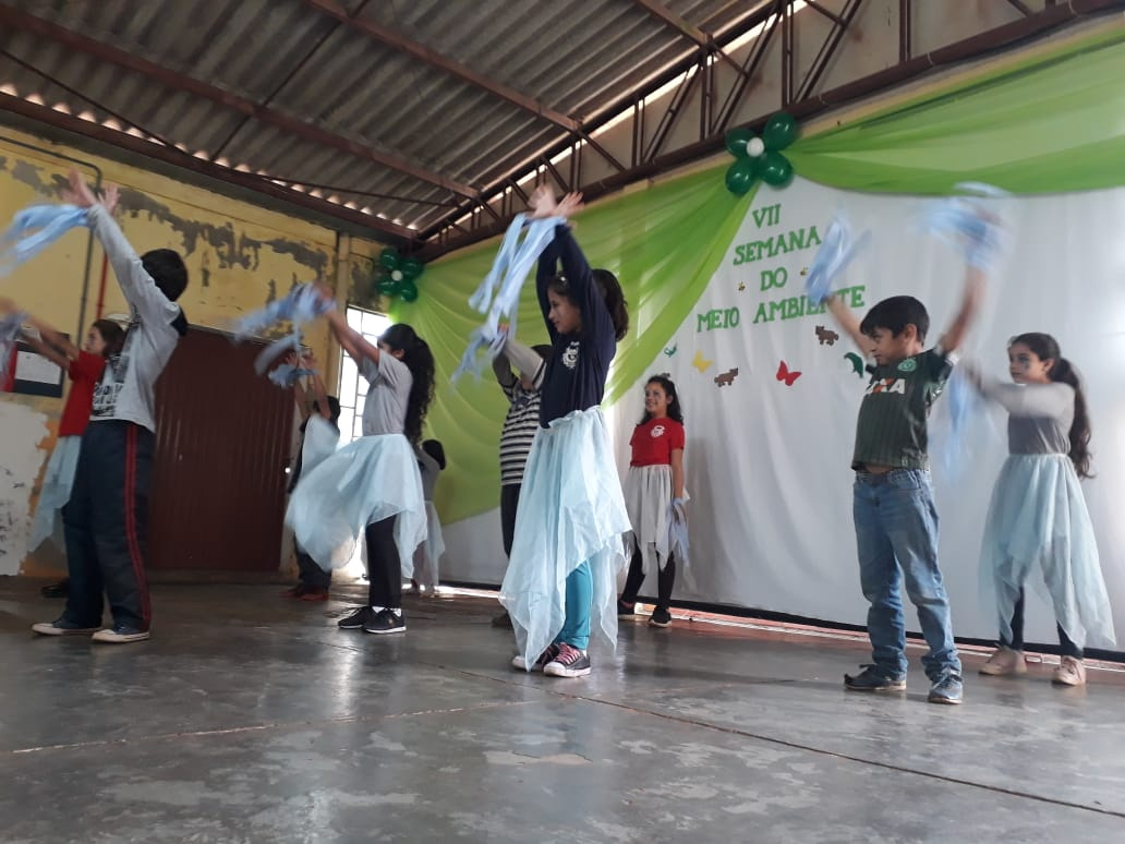 A gincana acontece durante toda a semana, as equipes são mistas formadas com alunos do 1º ao 9º ano, para que haja socialização e solidariedade entre os estudantes nas tarefas realizadas. Na trilha ecológica as equipes respondem questões sobre o meio ambiente para chegar até o final do percurso. A trilha foi a atividade que eu mais gostei, nós conseguimos responder todas as perguntas e podemos ver as árvores, os passarinhos, as aranhas,as borboletas e muitas flores relata a aluna Marina Legenberg de 09 anos. O tema sobre a reciclagem do lixo também foi trabalhado na escola. Aprendemos a separar o lixo e a cuidar do meio ambiente, relata a Giovana Bevilaqua, também de 09 anos.
