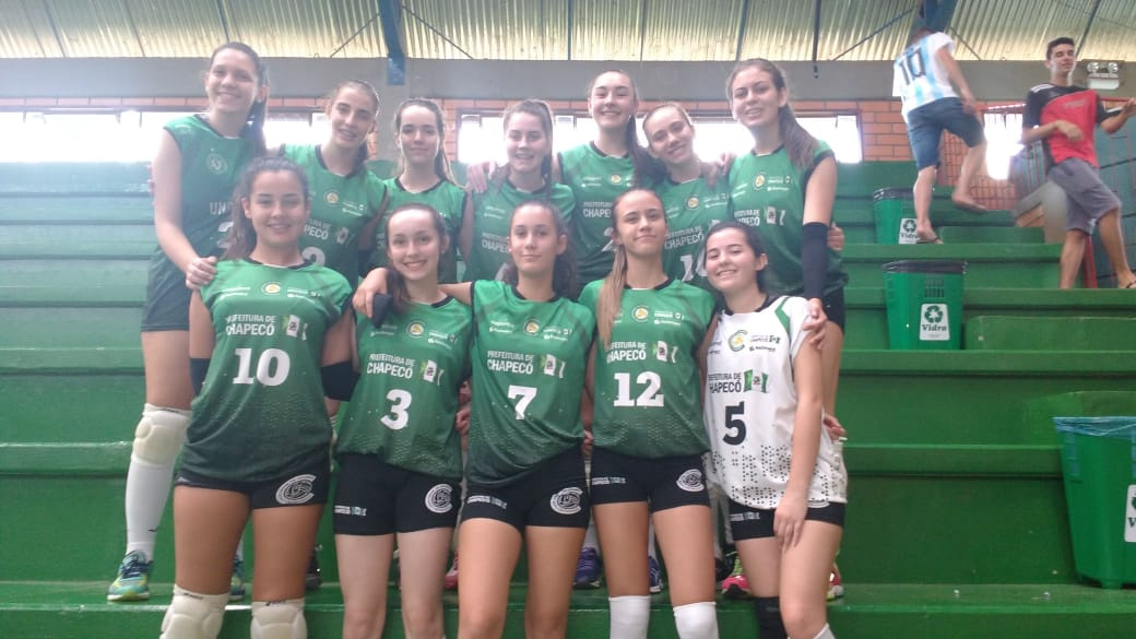 Chapecó, 10/06/2019, segunda-feira Com vitória de dois a zero sobre Palmitos, parciais de 25x21 e 25x21 o voleibol feminino de Chapecó ficou em primeiro lugar na Fase Microrregional da Olimpíada Estudantil de Santa Catarina e avançou para a fase regional. As disputas ocorreram em União do Oeste. Já o futsal feminino não conseguiu passar da eliminatória e perdeu na prorrogação para Cunha Porã por 1 x 0 depois de empate em dois gols no tempo normal.