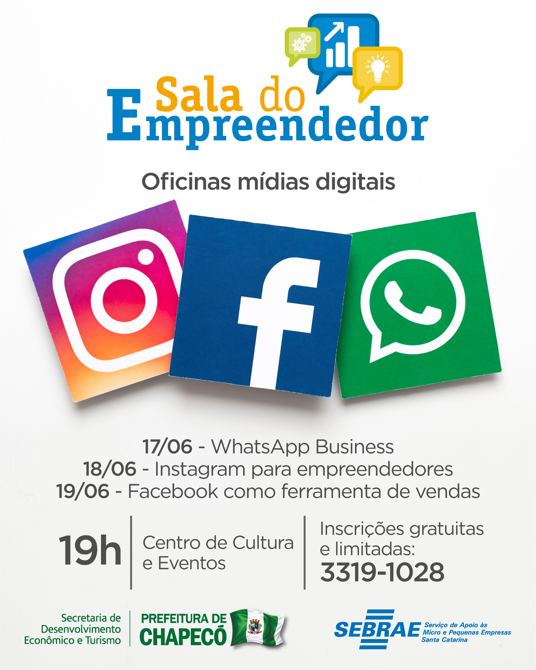 - Oficina de Mídias Digitais WhastApp Business | 17.06 das 19h às 22h
