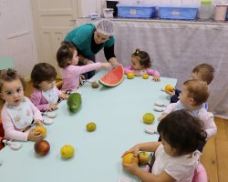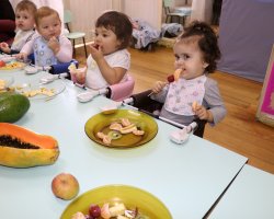 Chapecó, 17/06/2019, segunda-feira Contribuir através de experiências, atividades lúdicas e brincadeiras para uma alimentação saudável e o gosto por diferentes alimentos que são importantes para uma boa saúde, além de desenvolver o paladar através da motivação despertando o interesse em conhecer e aceitar novos alimentos.Este foi o projeto trabalhado com a turma de 4 meses a 2 anos do Centro de Educação Infantil Municipal Cantinho da Imaginação para perceber e explorar as diferentes sensações promovidas pelos órgãos do sentido a fim de promover o conhecimento e gosto por novos alimentos, sentir e apreciar diferentes alimentos com o propósito de incluí-los na alimentação diária.