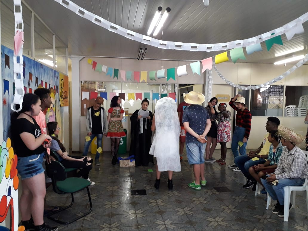 Chapecó, 01/07/2019, segunda-feira Com o objetivo de aproximar as equipes com as famílias das crianças e adolescentes atendidos pelos Serviços de Convivência, da Secretaria de Assistência Social, foram organizadas festas juninas. A festa típica propõe o engajamento das famílias, estimula a participação e a convivência nos espaços. É um momento de descontração e alegria, onde as crianças e adolescentes participam de uma atividade diferenciada, realizam apresentações e ficam perto da família. Os Serviços de Convivência que realizaram Festa Junina foram o Distrito de Marechal Bormann, Santo Antônio, Passo dos Fortes, Seminário, Efapi CEU.