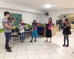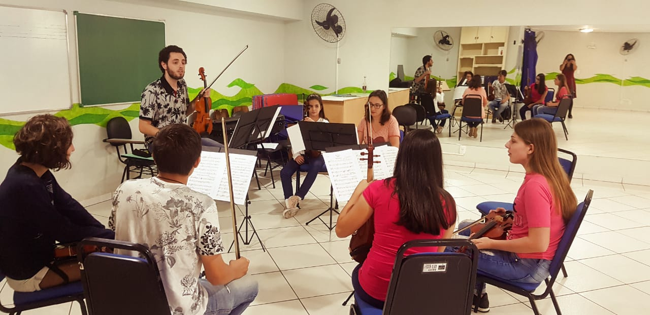 O Programa acontece de maneira descentralizada, em diversos bairros de Chapecó. O intuito é construir junto às comunidades movimentos de aprendizagem e expressividade, utilizando a arte como ferramenta e transformação social. Em 2018, o programa recebeu cerca de 1400 alunos, nos cursos de violão popular, violino, viola de arco, violoncelo, percussão sinfônica, flauta doce e transversal, clarinete, trompete, ballet, jazz, teatro, coral do círculo italiano, coro da Orquestra da Sinfônica, grupo vocal feminino, coro jovem, teoria musical.