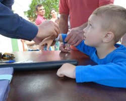 A auxiliar administrativo Valderília Ruchel procurou o posto assim que chegou na feira para identificar o filho Davi Lucca, de três anos e aprovou a iniciativa. Acho muito importante, porque num evento grande como esse, com muitas pessoas, é fácil a criança se perder.