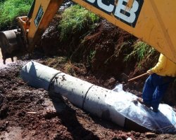 - Implantação de rede pluvial, reparos e manutenção de tubulação, galerias e bocas de lobo nos Bairros Pinheirinho, Santo Antônio, São Pedro e Boa Vista;