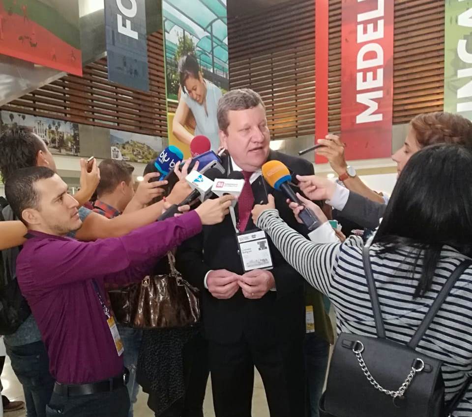 Chapecó é o único Município do Brasil na 10ª Cúpula Mundial das Cidades (10th World Cities Summit - WCS), que acontece até sexta-feira (12-07), em Medellín, na Colômbia, com importantes debates sobre o futuro dos Municípios. O Prefeito de Chapeco, Luciano Buligon foi recebido na manhã desta quarta-feira (10-07), pelo Prefeito de Medellín, Federico Gutiérrez, no Centro de Convenções Plaza Mayor, sede da Cities Summit.