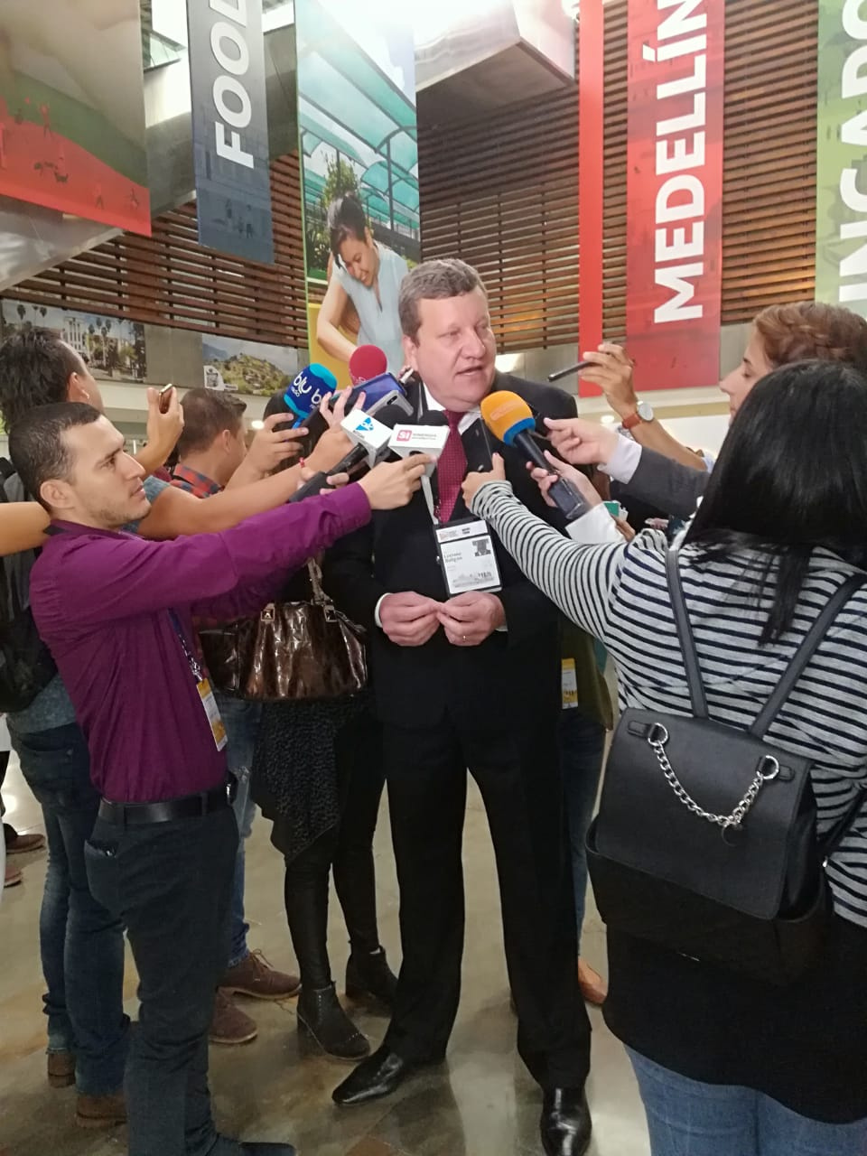 Durante esse primeiro dia, Buligon também visitou os expositores mundiais que apresentam tecnologias para a digitalização das prefeituras, recebeu um convite para participar da Festa das Flores, na comunidade de Santa Helena, e se encontrou com o Embaixador do Brasil na Colômbia, Júlio Biteli.