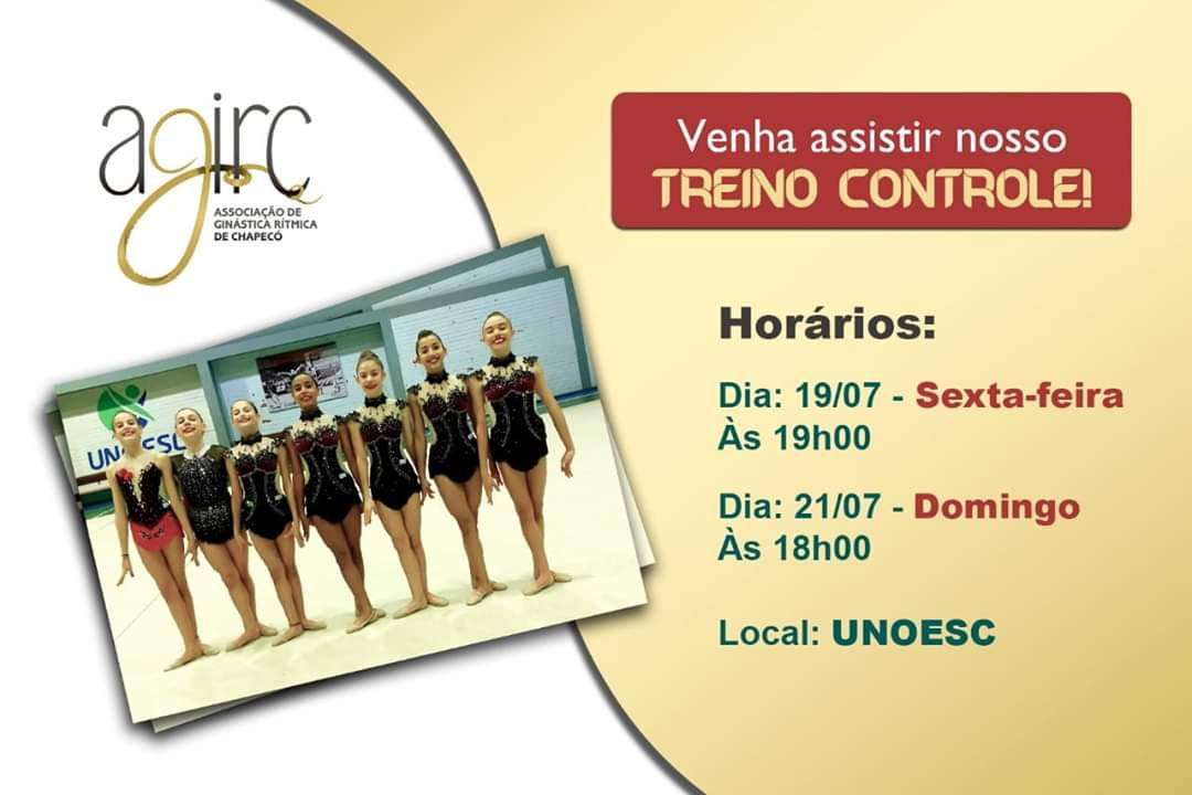 Chapecó, 19/07/2019, sexta-feira Com os treinos reforçados no período de férias das atletas, a Associação de Ginástica Rítmica de Chapecó SC está em fase final de preparação para os Joguinhos Abertos de Santa Catarina. Por isso, tem marcado dois treinos onde as atletas irão apresentar as coreografias que serão apresentadas nas competições.