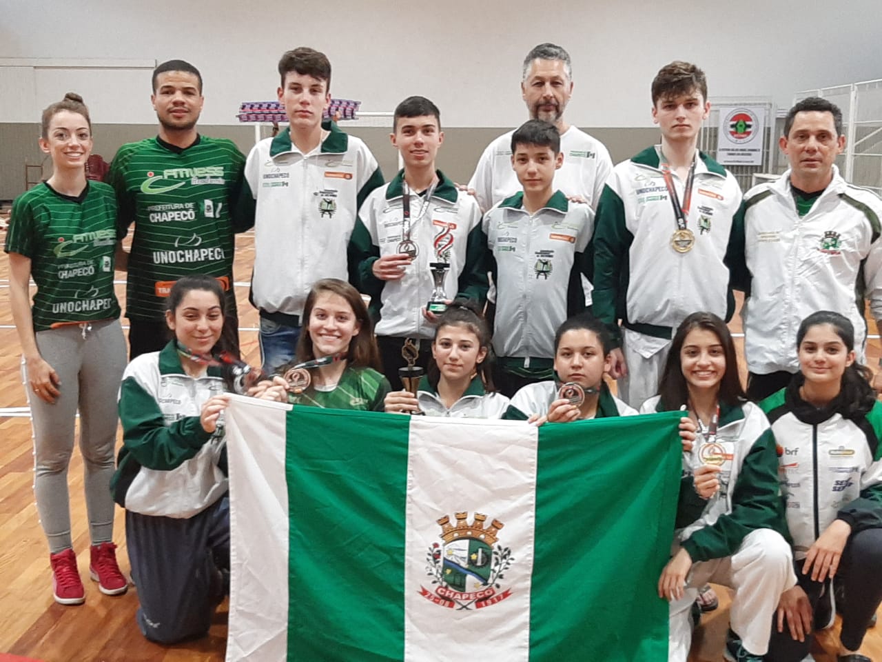Chapecó, 24/07/2019, quarta-feira Seguem até sábado (27) os Joguinhos Abertos de Santa Catarina em Rio do Sul. Nesta quarta-feira (24) o taekwondo foi bem na competição e levantou o segundo lugar geral por equipe no masculino e o terceiro no feminino. Além disso, os enxadristas Arthur e Bia garantiram medalha de prata no individual e nesta quinta-feira (25) decidem se a cor da medalha vai mudar para a amarela. Nesta quinta-feira também inicia o Judô que no feminino ano passado levantou troféu de campeão para Chapecó.