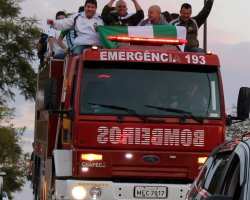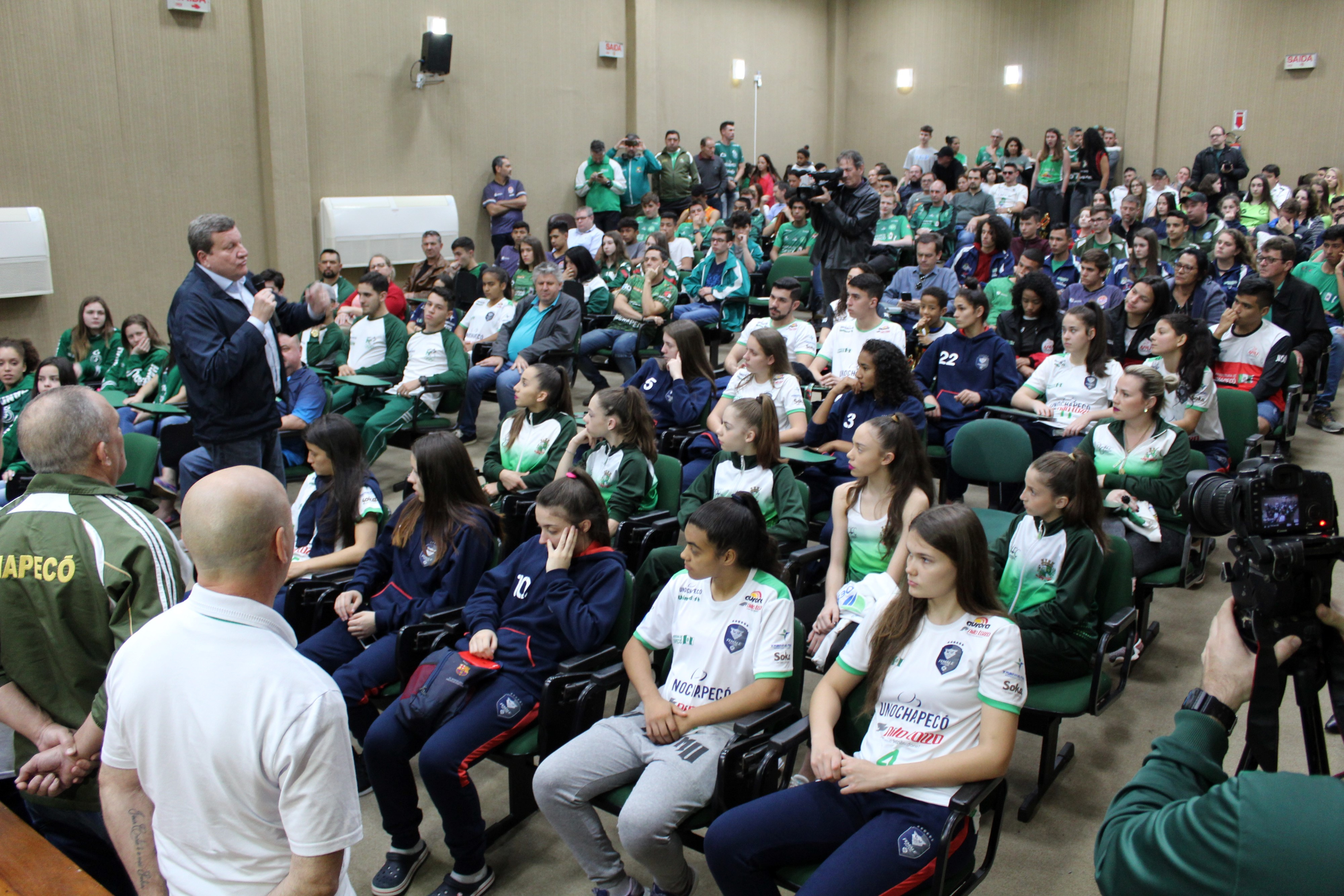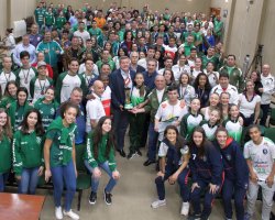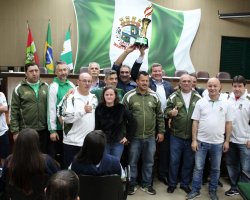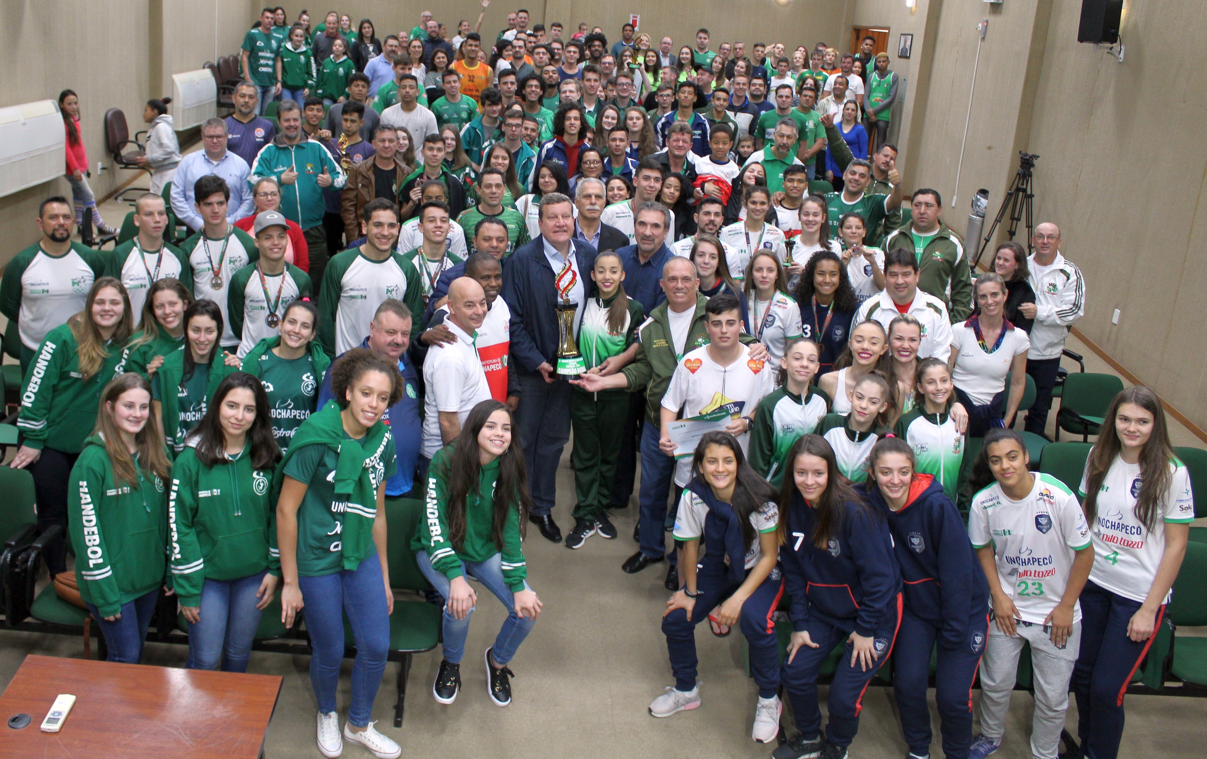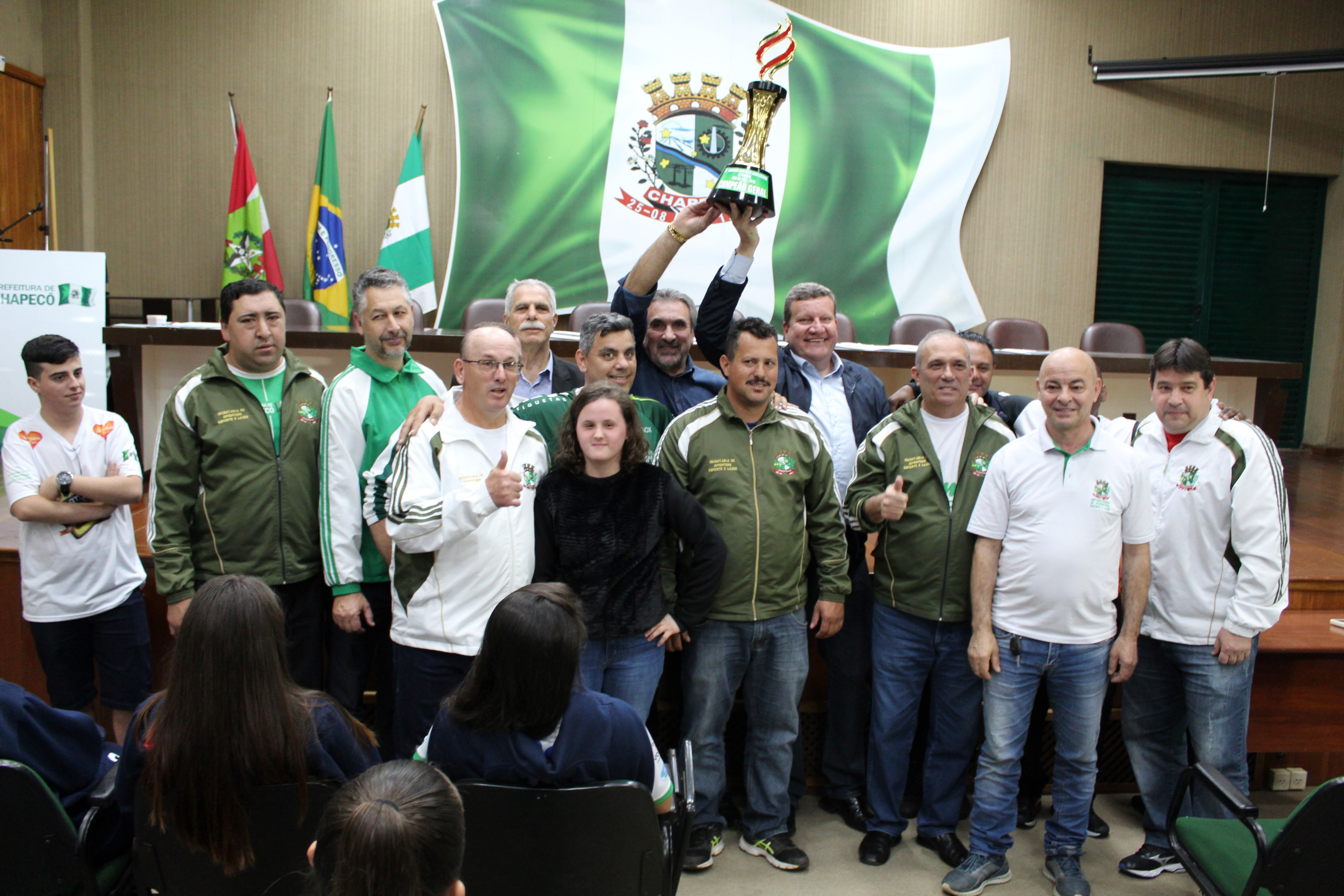 Chapecó, 29/07/2019, segunda-feira Chapecó ainda comemora o histórico título de Campeão Geral dos Joguinhos Abertos de Santa Catarina. Na segunda-feira (29) os atletas, dirigentes, comissão técnicas e equipe da Secretaria de Juventude, Esporte e Lazer de Chapecó foram recebidos pelo prefeito Luciano Buligon que entregou um certificado como forma de agradecimento pela conquista histórica. Além disso, desfilaram pela Avenida Getúlio Vargas, em caminhão do Corpo de Bombeiros.