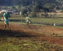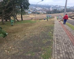 de lobo nos Bairros Trevo e Parque das Palmeiras. Ajardinamento, plantio de grama e flores nos canteiros e rótulas localizadas nas Avenidas São Pedro, Fernando Machado e na Rua Rui John Kennedy, Ecoparque e Praça Coronel Bertaso;