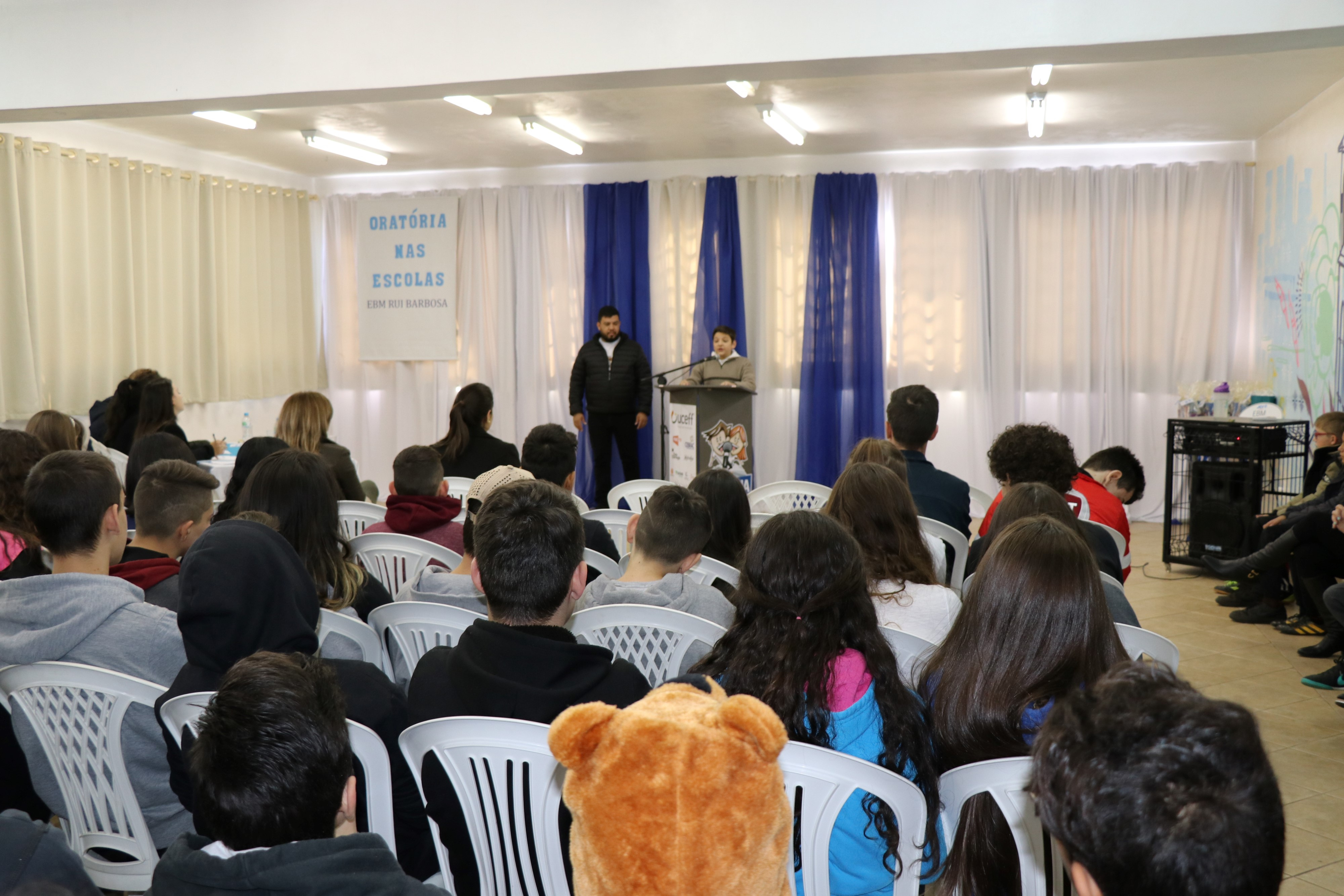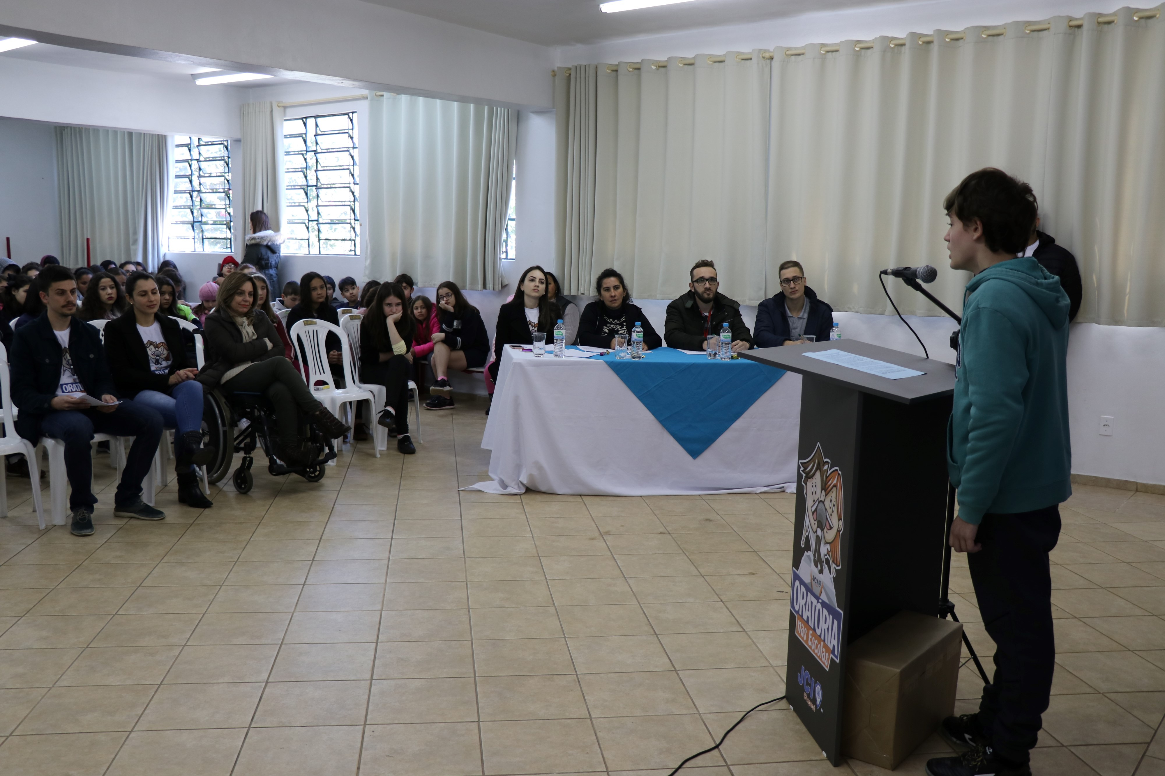 Chapecó, 15/08/2019, quinta-feira A Prefeitura de Chapecó, por meio da Secretaria de Educação - SEDUC, em parceria com a JCI- Junior Chamber International, desenvolve o Projeto Oratória nas Escolas, que atende aproximadamente 1.700 alunos de 7º e 8º ano da Rede Municipal de Ensino. Durante este mês, as instituições educativas que participam do projeto realizaram em suas sedes a final por escola, escolhendo seus representantes. O projeto está em sua 11ª edição, reafirmando assim, cada vez mais, a sua importância no contexto escolar e comunitário.