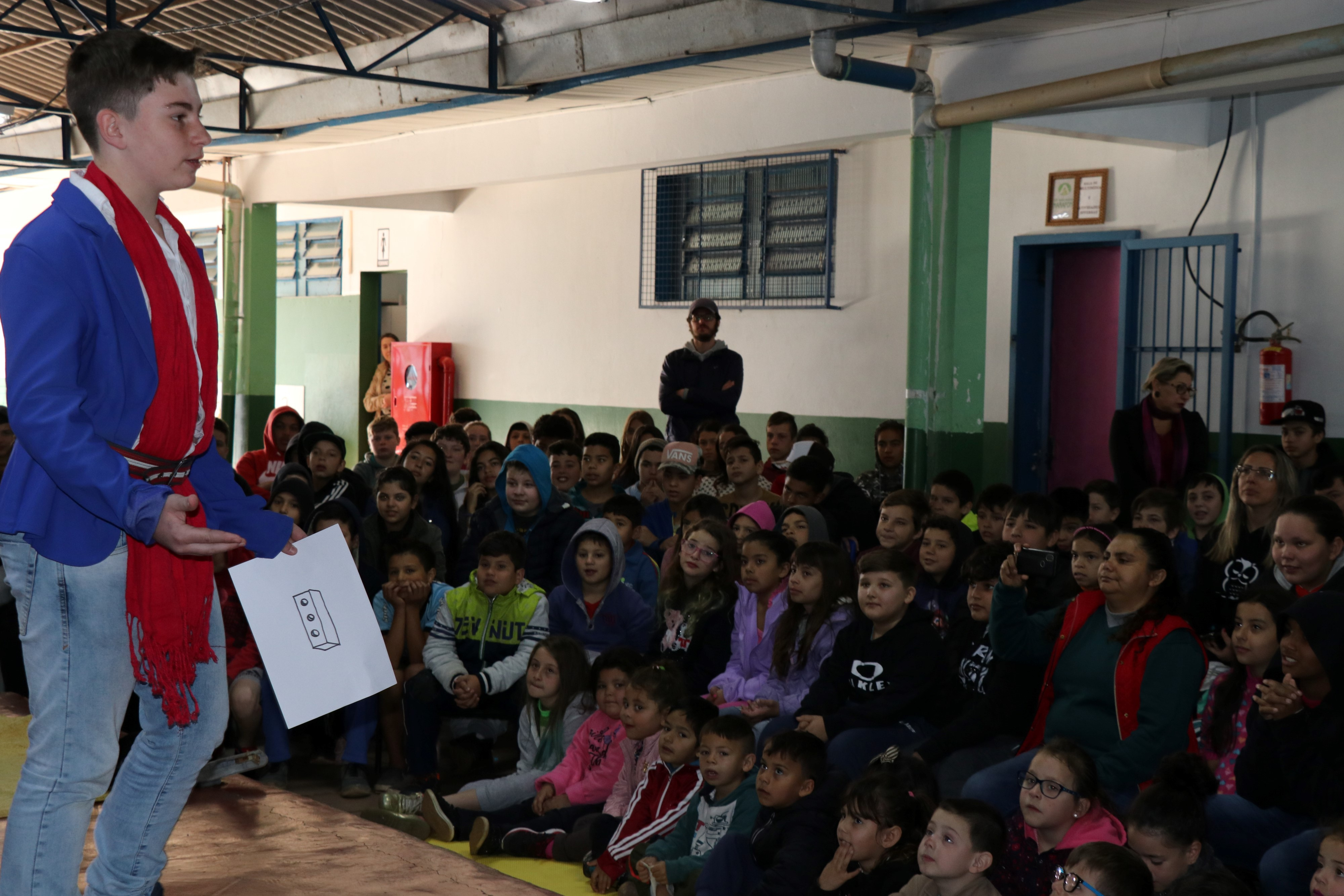 Assim, fizeram uma releitura dos livros produzindo uma peça de teatro. O aluno Joel Marques Briguente do 9º ano destaca que após ler o livro, foram juntando as pessoas que queriam participar, ensaiaram junto com as professoras. Eu representei o aviador e gostei muito de fazer esse teatro, comentou. Mesmo ansiosos para se apresentarem em outro espaço, os alunos demonstraram muita segurança na apresentação. O aluno Bruno Gabriel Pedroso do 8º ano relata que foi um desafio de interpretar o pequeno príncipe, mas gostou muito. O aluno Gustavo de Freitas do 6º ano relata que teve um pouquinho de vergonha, mas ver as crianças sorrindo com a apresentação foi muito bom.