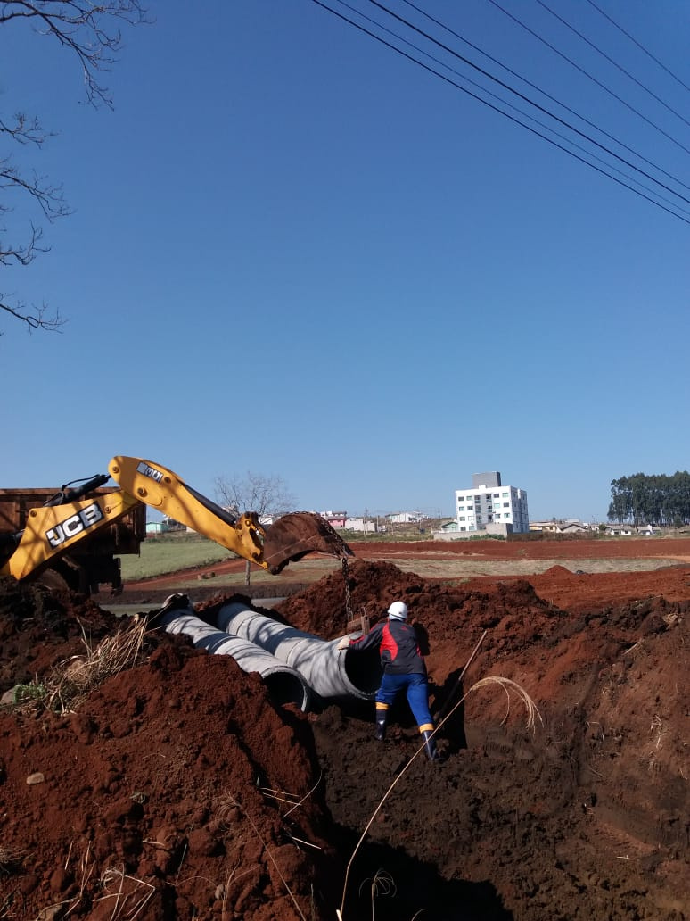 - Implantação de rede pluvial, reparos e manutenção de tubulação, galerias e bocas de lobo nos Bairros Colina Verde, Cristo Rei, Santo Antônio e Seminário;