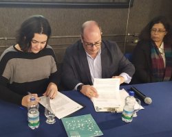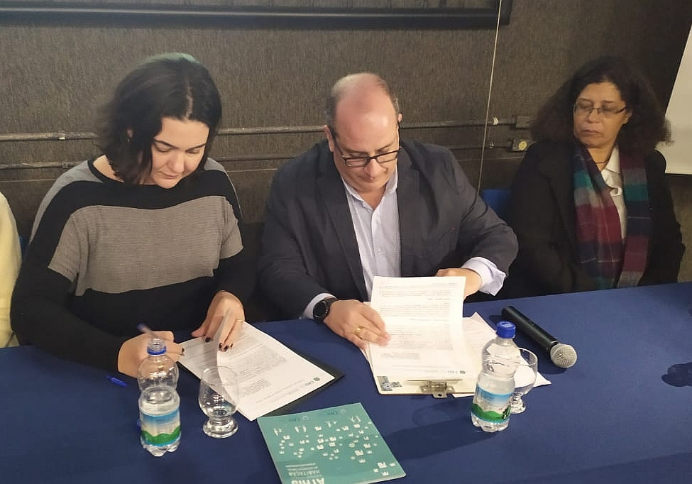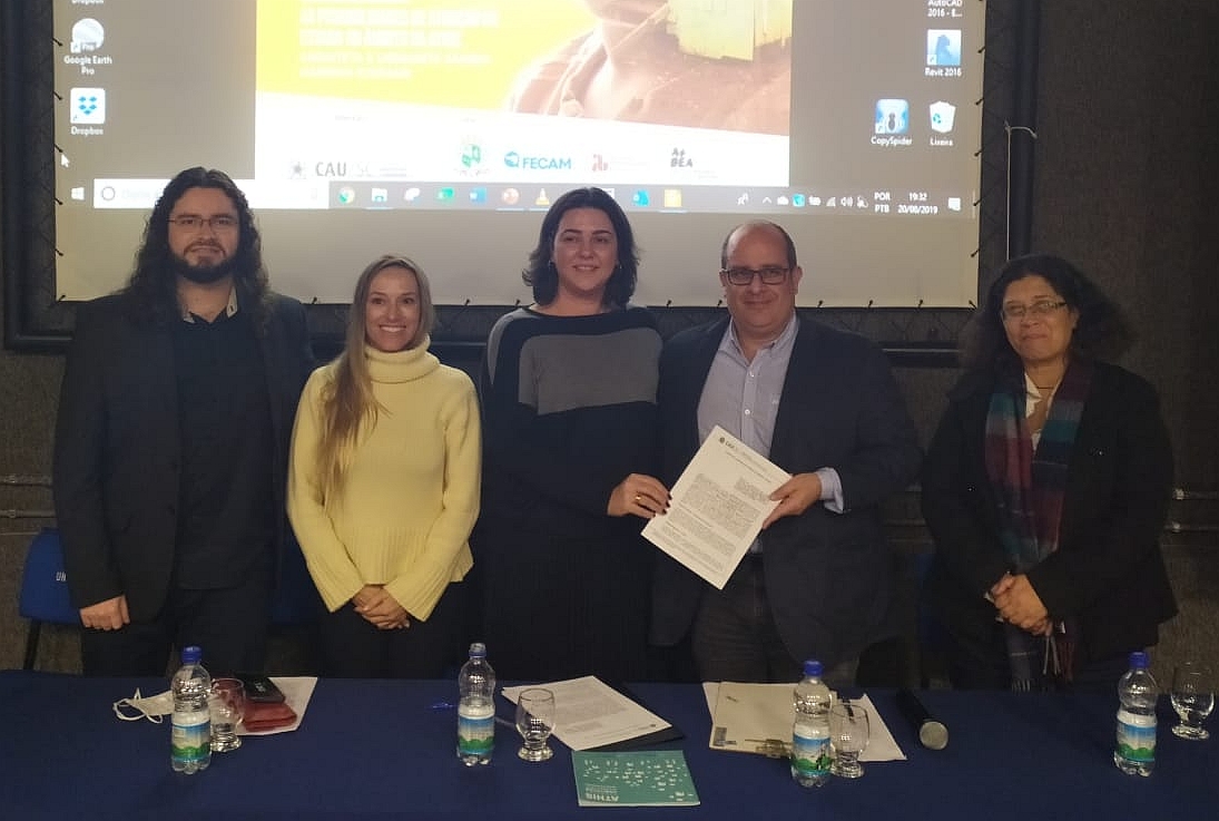 A assinatura ocorreu durante a solenidade de abertura do Curso de Capacitação em ATHIS, com a presença da presidente do CAU/SC, arquiteta Daniela Pareja Garcia Sarmento.