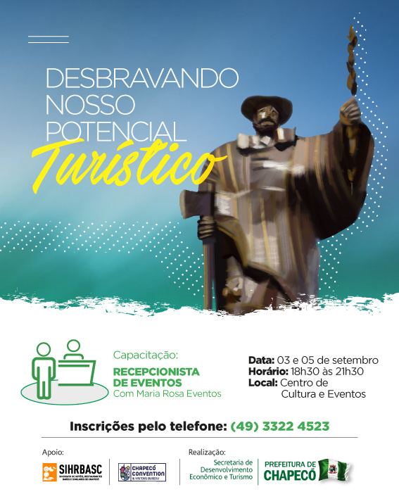 Chapecó, 28/08/2019 - quarta-feira Estão abertas as inscrições para novos cursos do Projeto Desbravando Nosso Potencial Turístico. Criado em 2016 pela Secretaria de Desenvolvimento Econômico e Turismo, o Projeto conta com a parceria do Sindicato de Restaurantes, Bares e Hotéis de Chapecó (Sirbasch) e Convention & Visitors Bureau. Em três anos e meio foram 70 cursos e palestras voltados aos profissionais da área do turismo, com o objetivo de capacitar as pessoas que fazem o primeiro contato com os turistas e prestam serviço diretamente a eles. Mais de 700 pessoas já foram capacitadas e qualificadas pelo Projeto de forma gratuita. Para o Secretário de Desenvolvimento Econômico e Turismo, Marcio Sander, por meio dessas ações que proporcionam conhecimento, estamos estimulando as pessoas a se qualificarem ainda mais em suas áreas. Outro ponto importante do Projeto está ligado ao grande número de visitantes e turistas que circulam pelo Município devido aos eventos e feiras que são realizados. Quando ele chega a Chapecó e é bem recebido por um profissional experiente, com informações e conhecimento, isso gera confiança e bem-estar, fortalecendo a nossa imagem e consequentemente a nossa economia, explica Sander.