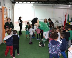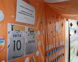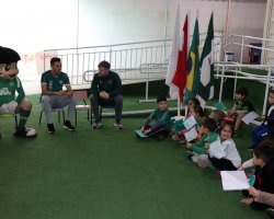 Eles interagiram com as crianças contando um pouco da rotina de treinos, responderam os questionamentos dos pequenos e também jogaram futebol. “Fico muito feliz de estar aqui com as crianças” relatou Yann Rolim. “Eu esperei muito por este dia, estou muito feliz” relata o aluno Eduardo Fidelis de 5 anos. Para a professora Marlene Noronha, as crianças estavam ansiosas pela vinda dos jogadores. ‘Eles aprenderam toda a história do time e agora podem conversar com os jogadores”. Este Projeto teve o intuito de interagir com aspectos da vida das crianças, para que pudessem descobrir um pouco da origem e história do município, bem como a diversidade cultural de nossa cidade. “É na escola que as crianças têm possibilidade de aprender e valorizar o local onde vivem”, relatou a gestora Andreia Bonan.
