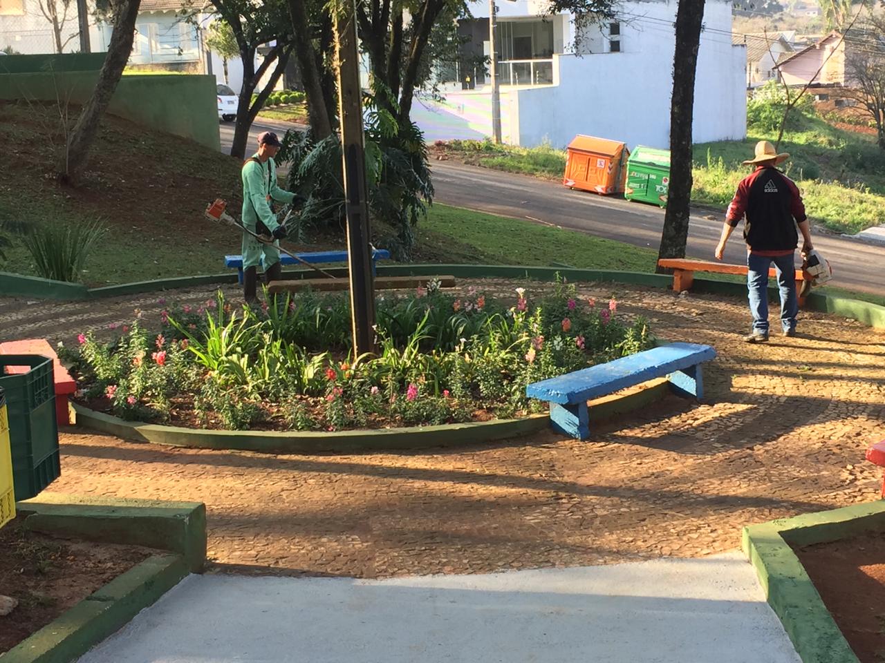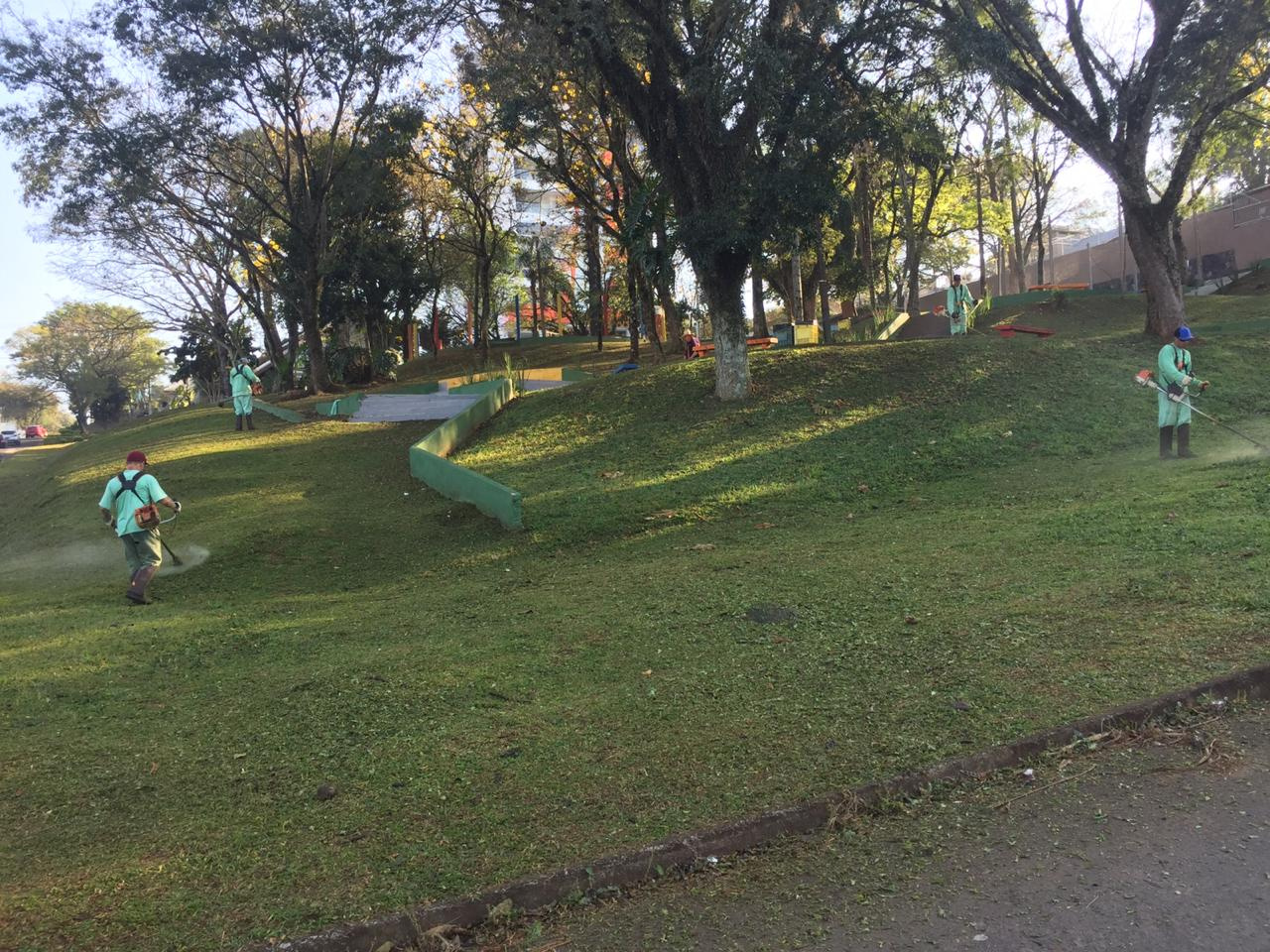 - Corte de grama e roçada na área central e no Bairro Jardim Itália, Postos de Saúde,