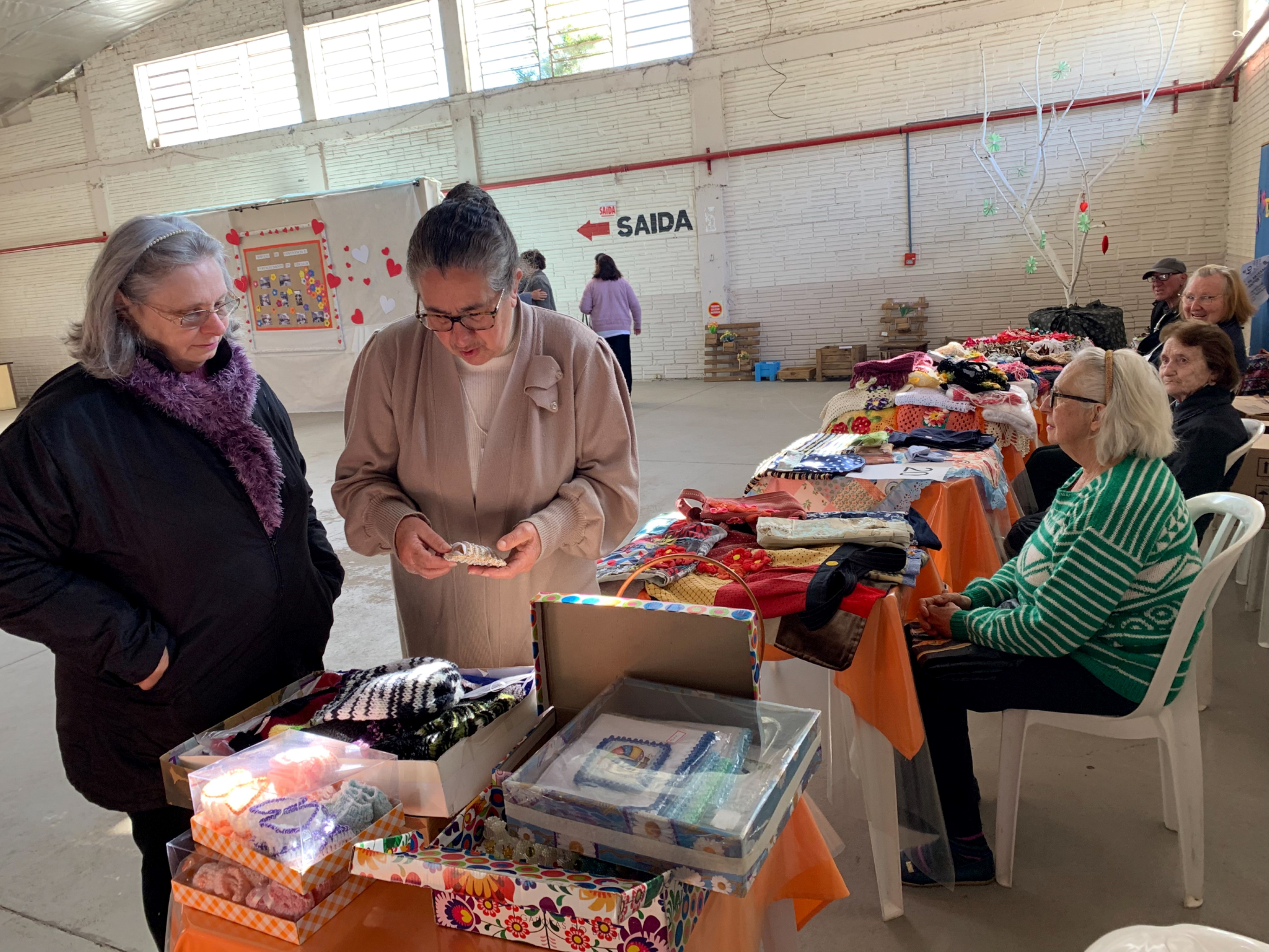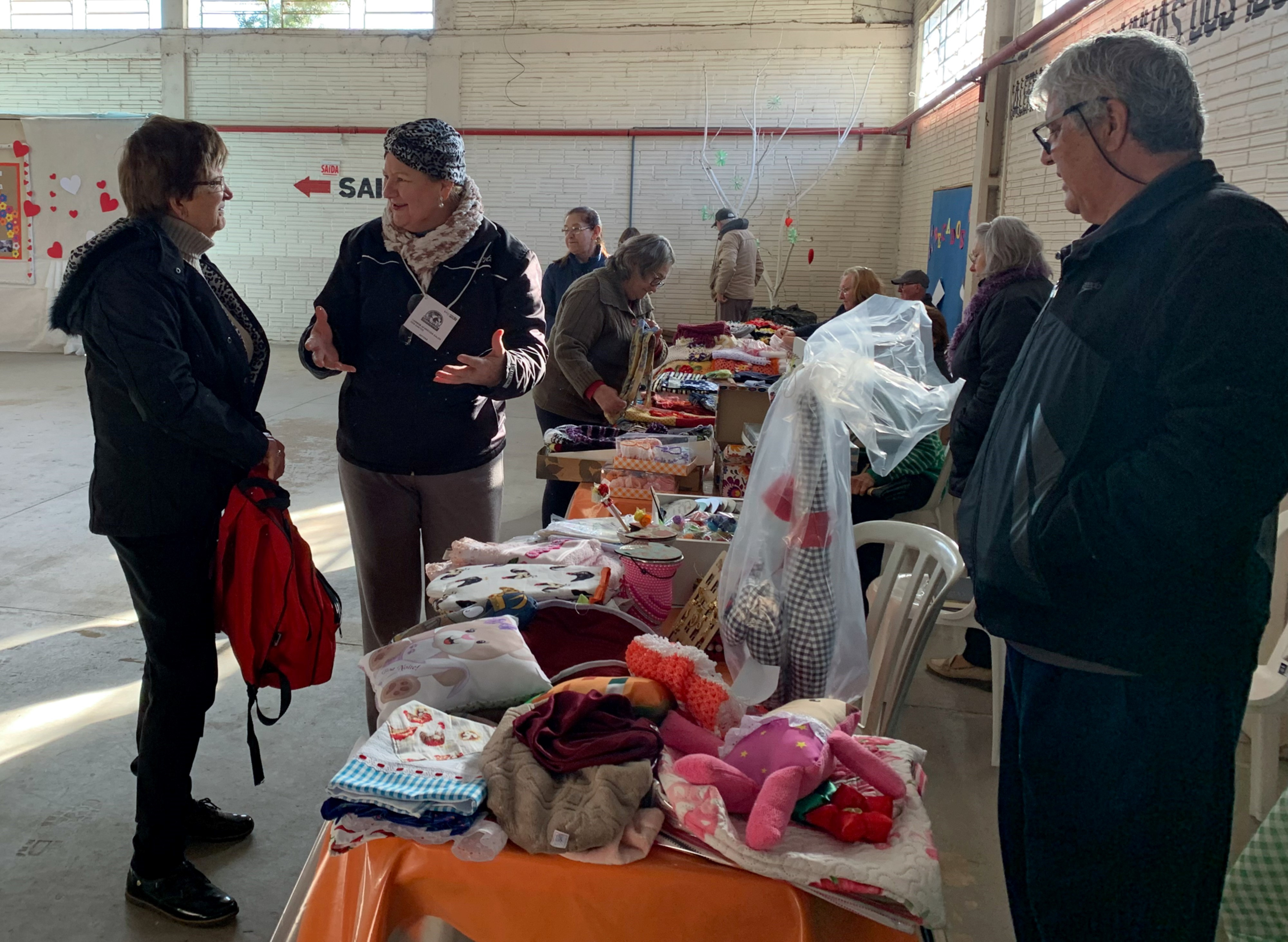 A feira é mensal e se transformou em um momento de muita integração, onde todos querem mostrar sua capacidade de reinventar-se apresentando novas criações a cada exposição e ainda tem a possibilidade de complementar a renda, pois, muitas vezes os idosos contribuem ou são responsáveis pelo principal rendimento nas famílias. O Senhor Albino Pagnussat é separado, mora sozinho, tem 3 filhos, 2 netos e aos 65 anos conta orgulhoso que ama o que faz e que começou fazer os tapetes de malha após ver e aprender mais nas oficinas e que a feira o motivou a produzir mais. Já a Dona Teresinha Onice Cardoso, aposentada de 61 anos, tem quatro filhos e é separada. Passou por cirurgia de coluna e após os 60 anos se viu motivada a ir em frente no artesanato e na vida e nunca mais parar.