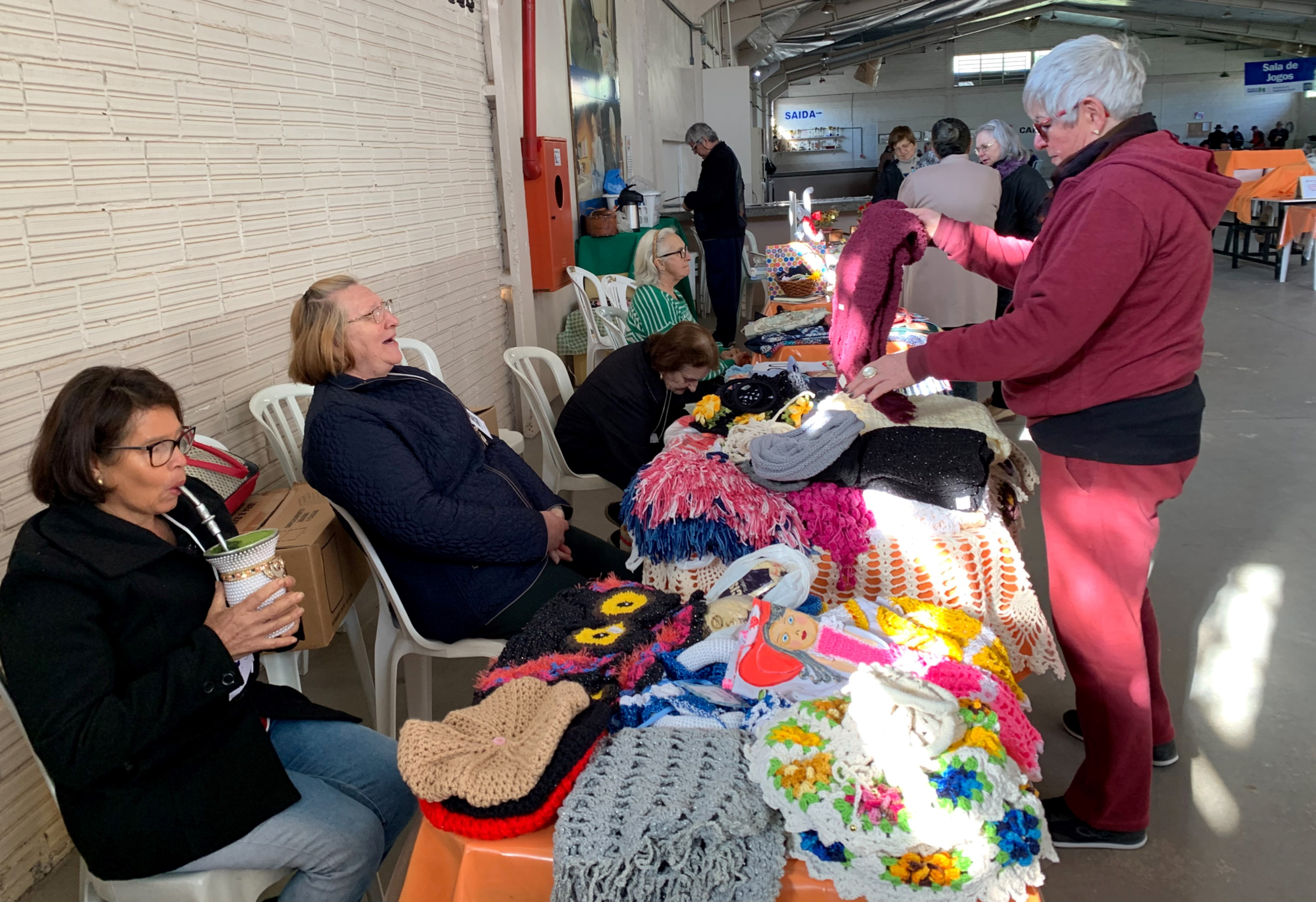 O andar compassado e os gestos mais lentos em nada ofuscam o brilho nos olhos e os sorrisos largos que a descoberta de novas habilidades e possibilidades de se reinventar após os 60 anos traz à vida destes senhores e senhoras. A energia e a vitalidade para novos projetosque esta geração de idosos tem, nem de longe os fazem ser considerados de velhos. Há muita alegria e integração entre os participantes da Feira. (Texto e fotos: Cíntia Bacher estudante de Jornalismo.)