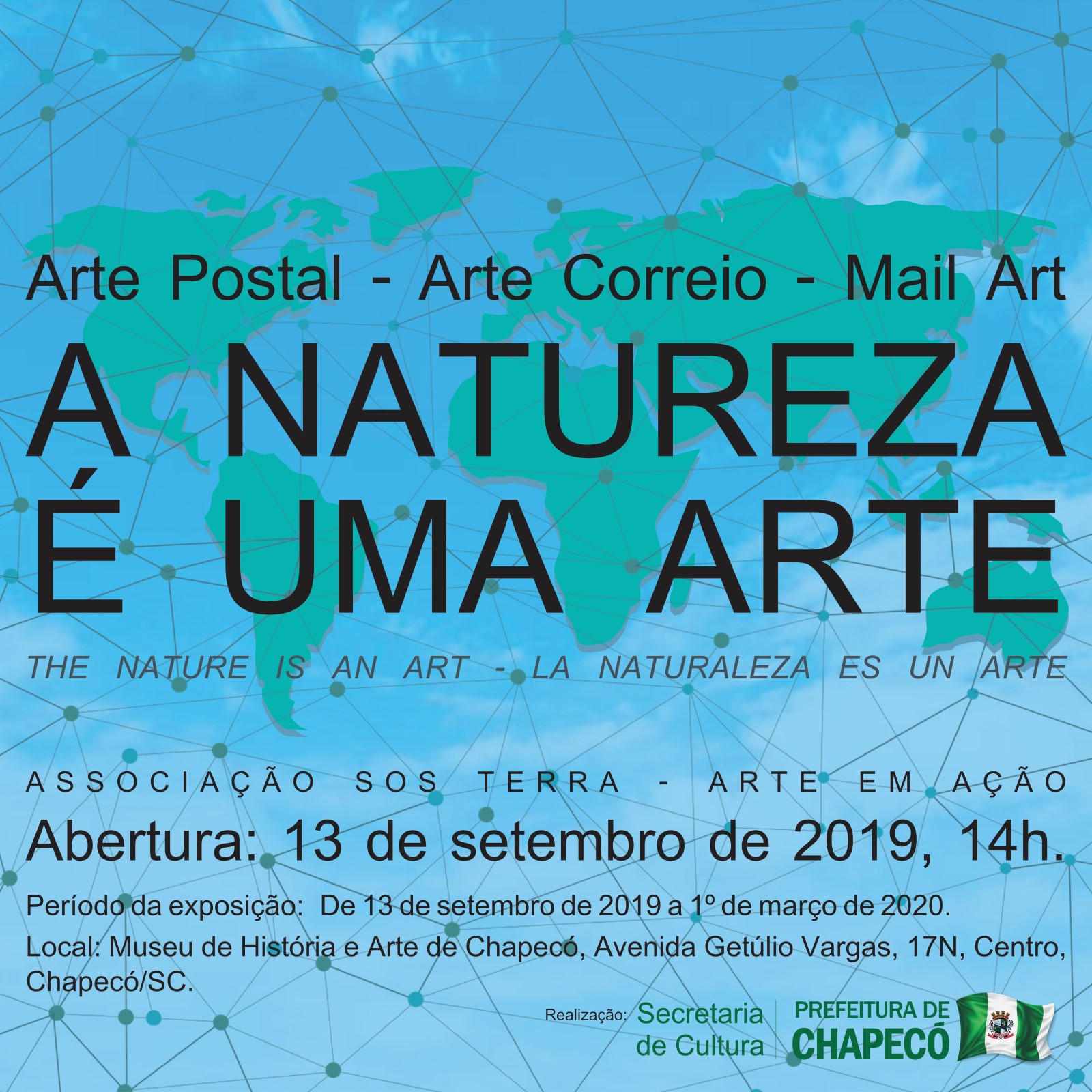 A exposição A NATUREZA É UMA ARTE: Arte Postal - Arte Correio - Mail Art é uma exposição de artes visuais, que apresenta temas ambientais que perpassam as preocupações dos sujeitos na sociedade contemporânea. Imersos em tais questões a Associação SOS Terra Arte em Ação em parceria com o Setor de Patrimônio Cultural promoveram uma convocatória a artistas para apesentarem o tema A natureza é uma arte, em propostas de Arte Postal. A exposição, formada por artistas de diversos países, traz um olhar sensível para a natureza em nosso tempo, reforçando o compromisso sociocultural do museu como espaço de formação.