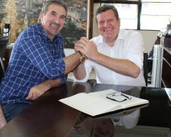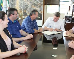 O prefeito Luciano Buligon transmitiu o cargo ao vice-prefeito Elio Francisco Cella na manhã desta segunda-feira (16) em ato realizado no Gabinete.
