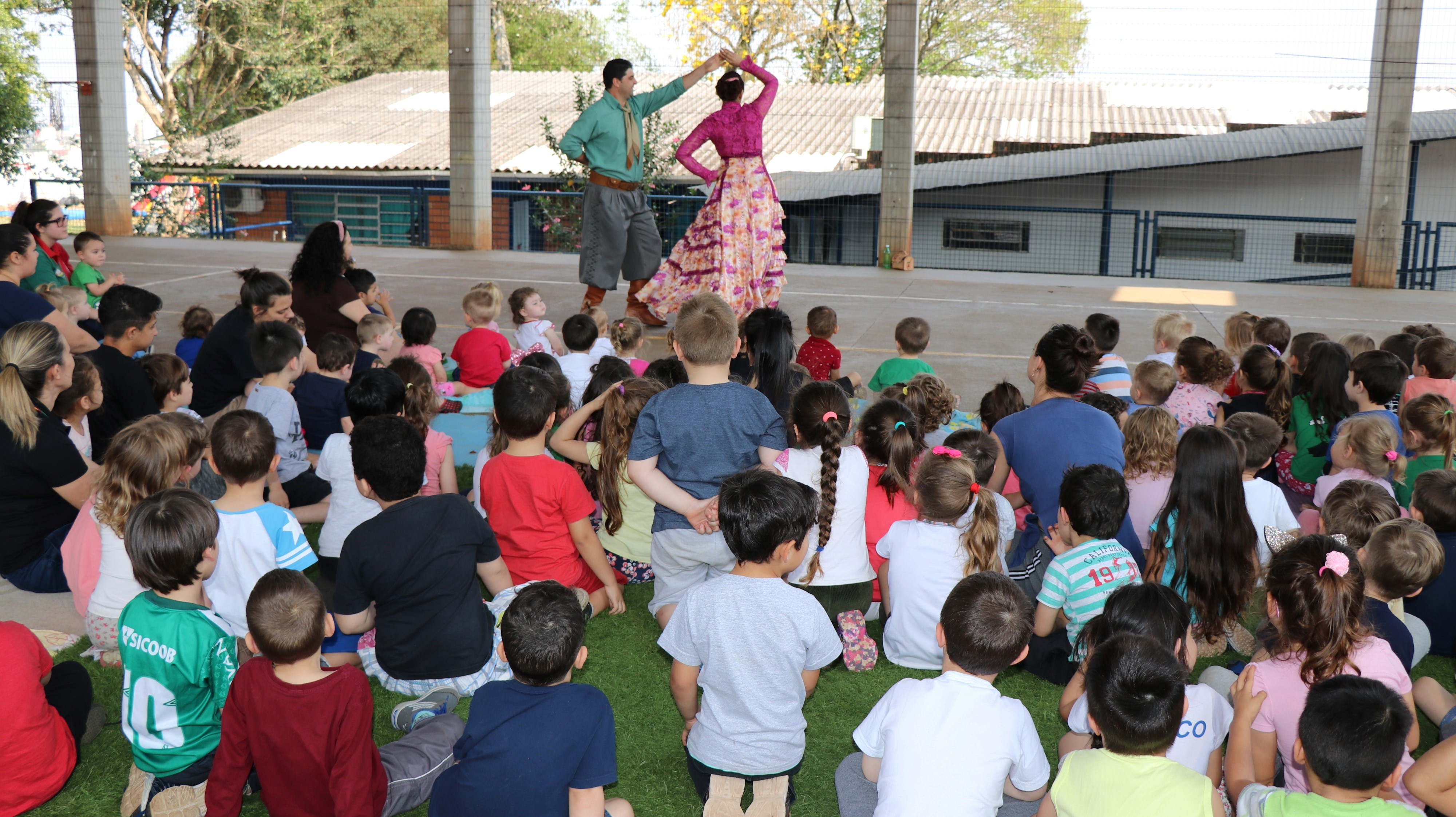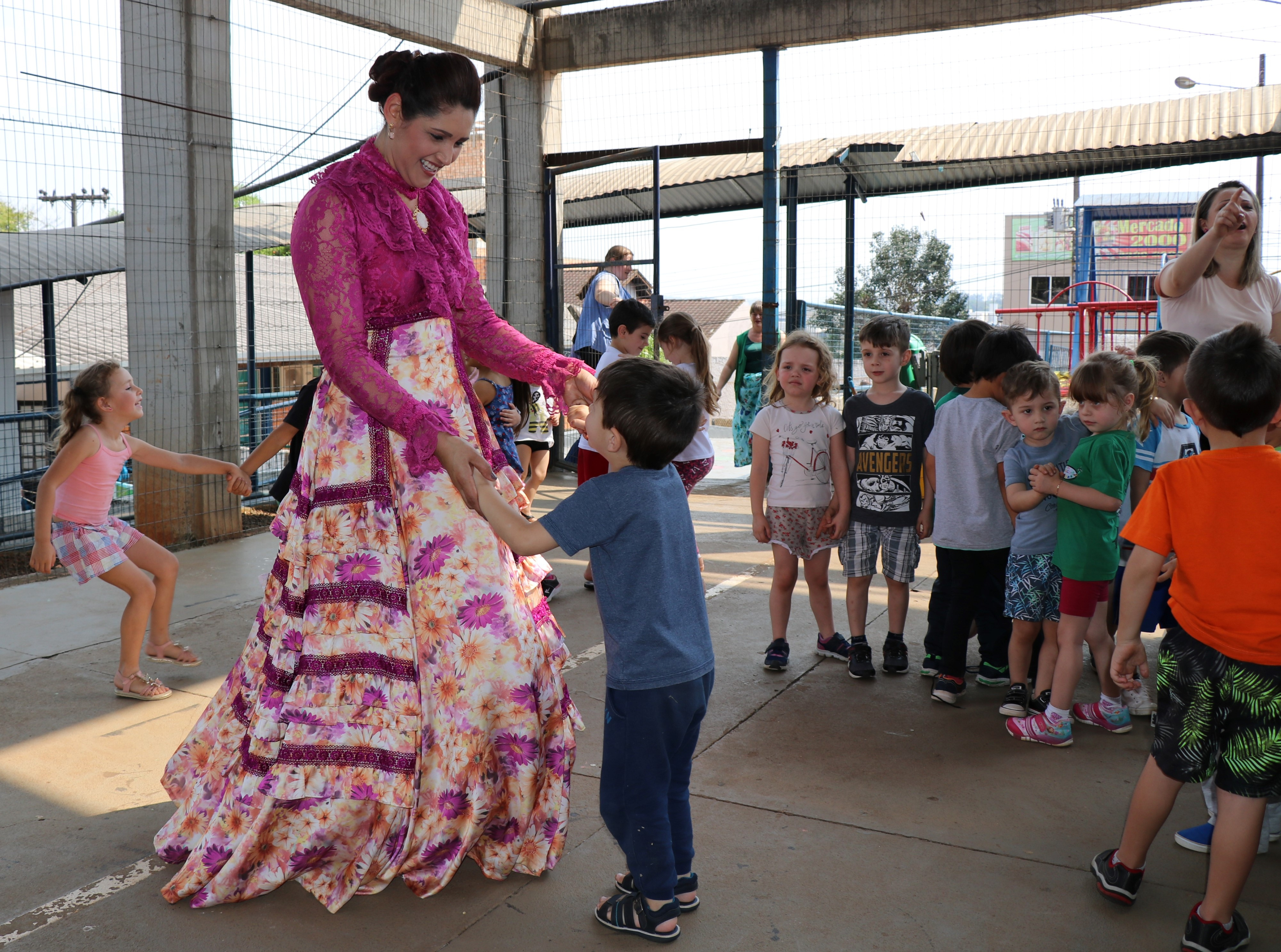 Chapecó, 16/09/2019, segunda-feira Uma semana recheada por ritmos, brincadeiras, passeios, apresentações e sabores tradicionais em homenagem à cultura tradicionalista gaúcha. Foi desta forma que o Centro de Educação Infantil Municipal Carmem Pelizza e o Centro de Educação Infantil Municipal Aquarela estão comemorando a Semana Farroupilha na Rede Municipal de Ensino de Chapecó, com apresentações artísticas e oficinas voltadas ao tradicionalismo do povo gaúcho. Os estudantes e professores que possuem vestimentas e acessórios que compõem a pilcha como: bombachas, vestidos de prenda, lenço e chapéu, puderam usar para ir à escola nesta semana e participar de uma série de atrações diferenciadas.