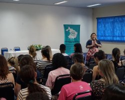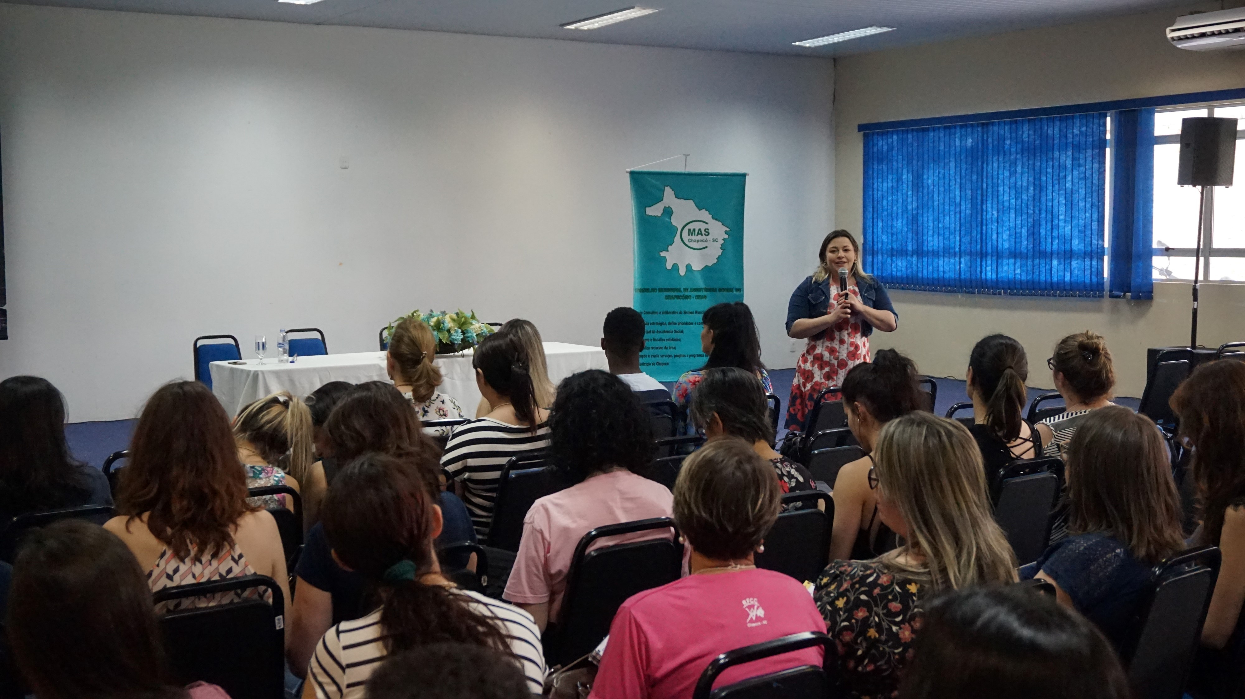 A temática da XII Conferência Municipal de Assistência Social, Assistência Social: Direito do povo com financiamento público e participação social foi abordada pela palestrante Maria Carolina da Silveira Moesch. Ela é psicóloga, especialista em Psicologia: Práticas Sociais e Desafios contemporâneos. Ela é coordenadora e docente do curso de Psicologia da Unochapecó e mestre pelo Programa de Mestrado Profissional em Politicas Sociais e Dinâmicas Regionais.