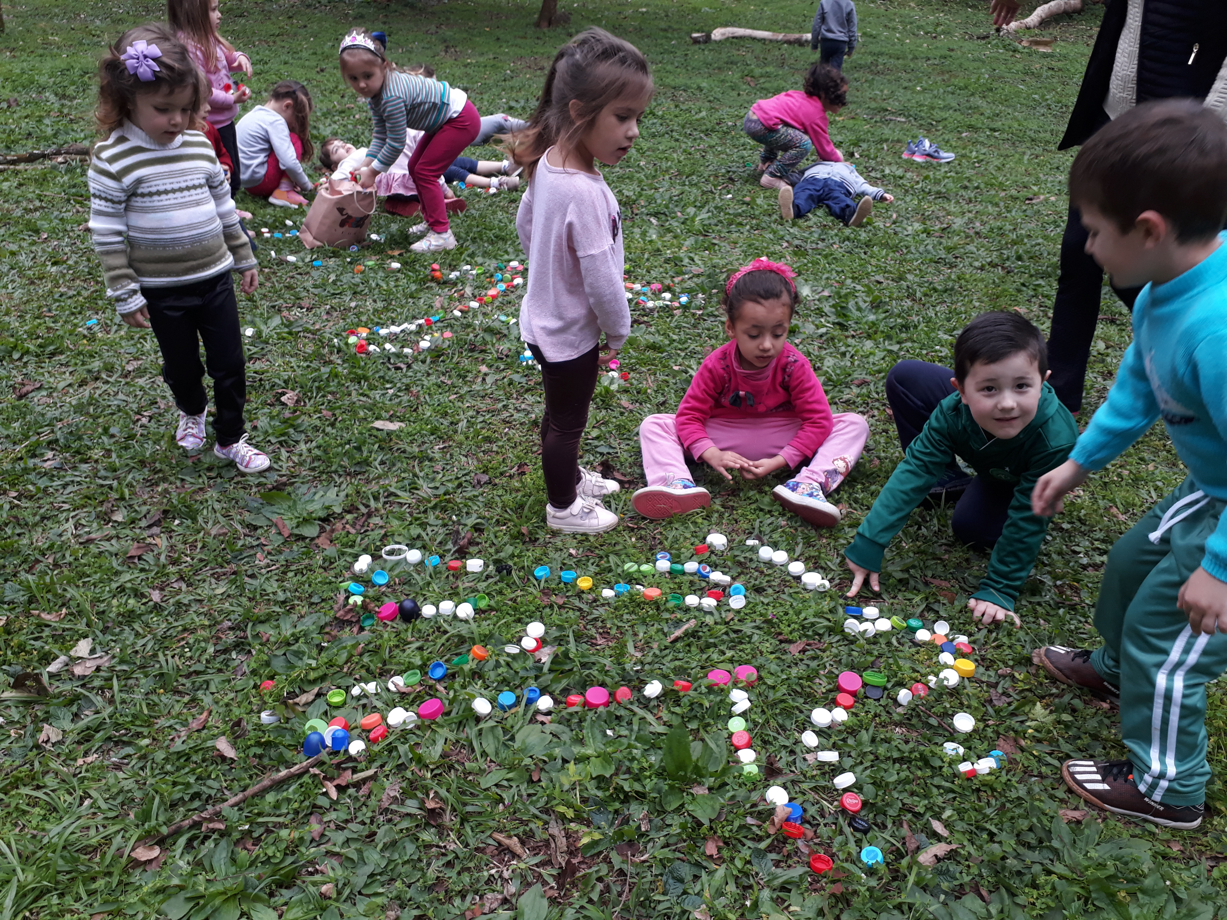 As atividades desenvolvidas foram caça ao tesouro com elementos da natureza, imitação com músicas relacionadas à imagem e segmentos corporais, representação gráfica do corpo humano com elementos recolhidos na natureza, desenho do corpo com as tampinhas, entre outras atividades de movimento explorando o espaço do parque. “Trabalhamos os conceitos de imagem corporal, realizamos atividades práticas, construindo vínculos por meio de brincadeiras e descobrindo os elementos da natureza. Tudo isso favorece o desenvolvimento das habilidades motoras”, relatou a professora de Educação Física Liamara Ogliari.