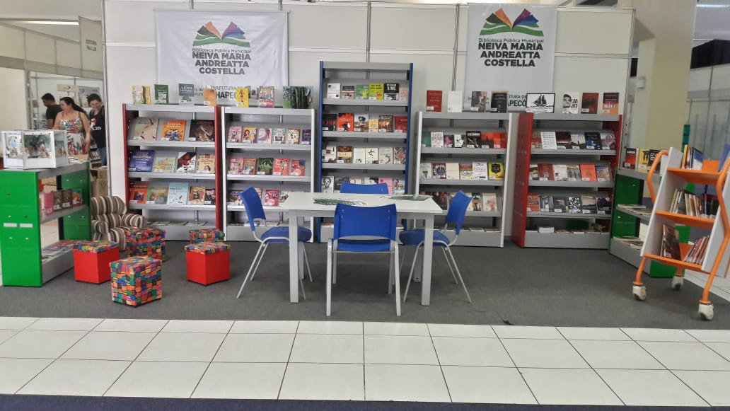 Um dos expositores da Feira do Livro é a Biblioteca Pública Municipal Neiva Maria Andreatta Costella, que participa da atividade há 03 anos. Em 2019, o diferencial do stand da Biblioteca Pública Municipal Neiva Maria Andreatta Costella é o stand mobiliado. Através de uma parceria com a empresa MetalPox empresa que fabrica mobiliários em Xanxerê, foi possível mobiliar o espaço. É um diferencial do nosso espaço, faz com que as pessoas voltem a atenção para o espaço buscando mostrar um espaço agradável e com mobílias modernas, destacou a Coordenadora da Biblioteca Pública Municipal Neiva Maria Andreatta Costella, Caroline Miotto.