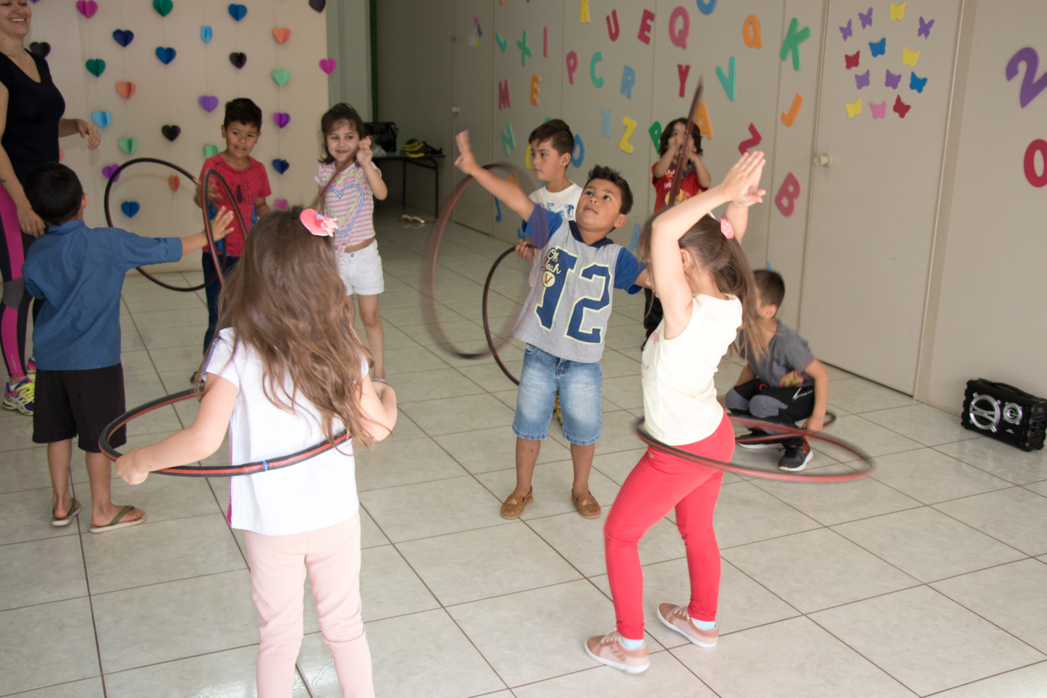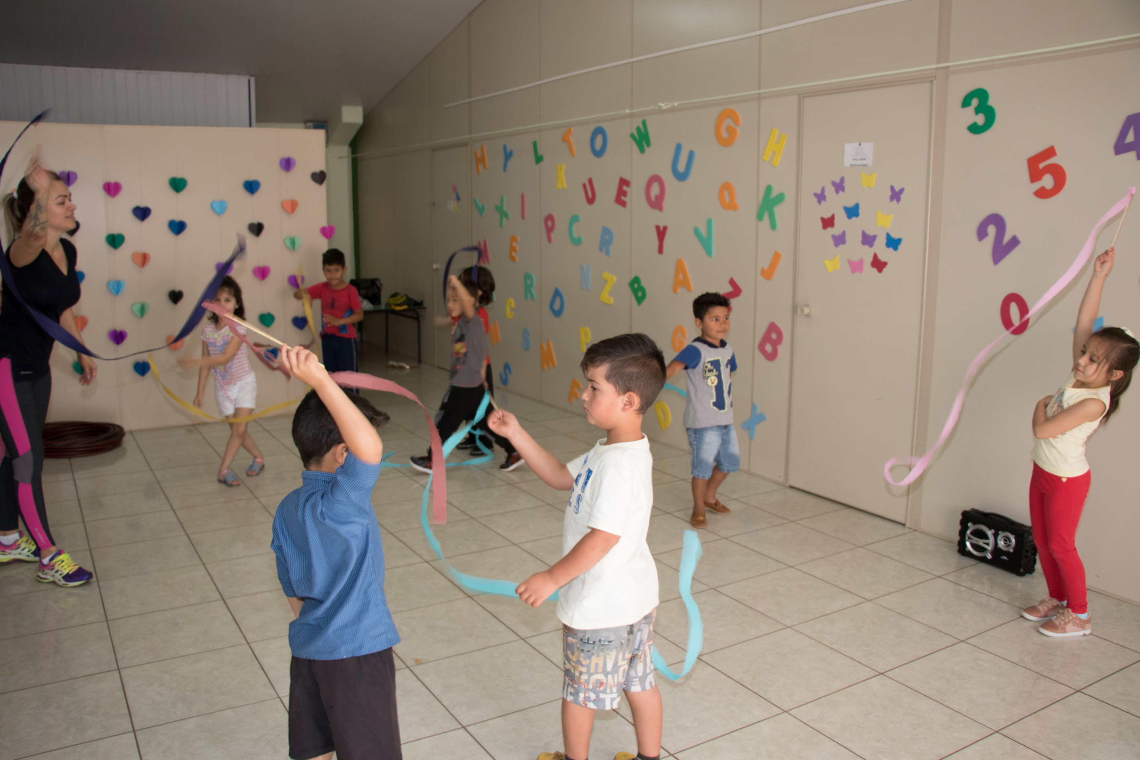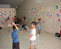 Chapecó, 19/09/2019, quinta-feira O Centro de Educação Infantil Municipal - CEIM Pe-te-ca do bairro Seminário, realizou o projeto Mexendo o corpo a gente é mais feliz com as crianças do pré-escolar. O objetivo foi desenvolver o interesse por brincadeiras cantadas e atividades rítmicas, a fim de que compreendam sua importância e explorem novas possibilidades de movimentos. Foram desenvolvidas diversas atividades nas aulas de Educação Física, tais como: atividades rítmicas com diferentes músicas; construção de aparelhos alternativos da ginástica rítmica e elementos corporais; brincadeiras cantadas e de mímicas; adivinhas e fantoches.
