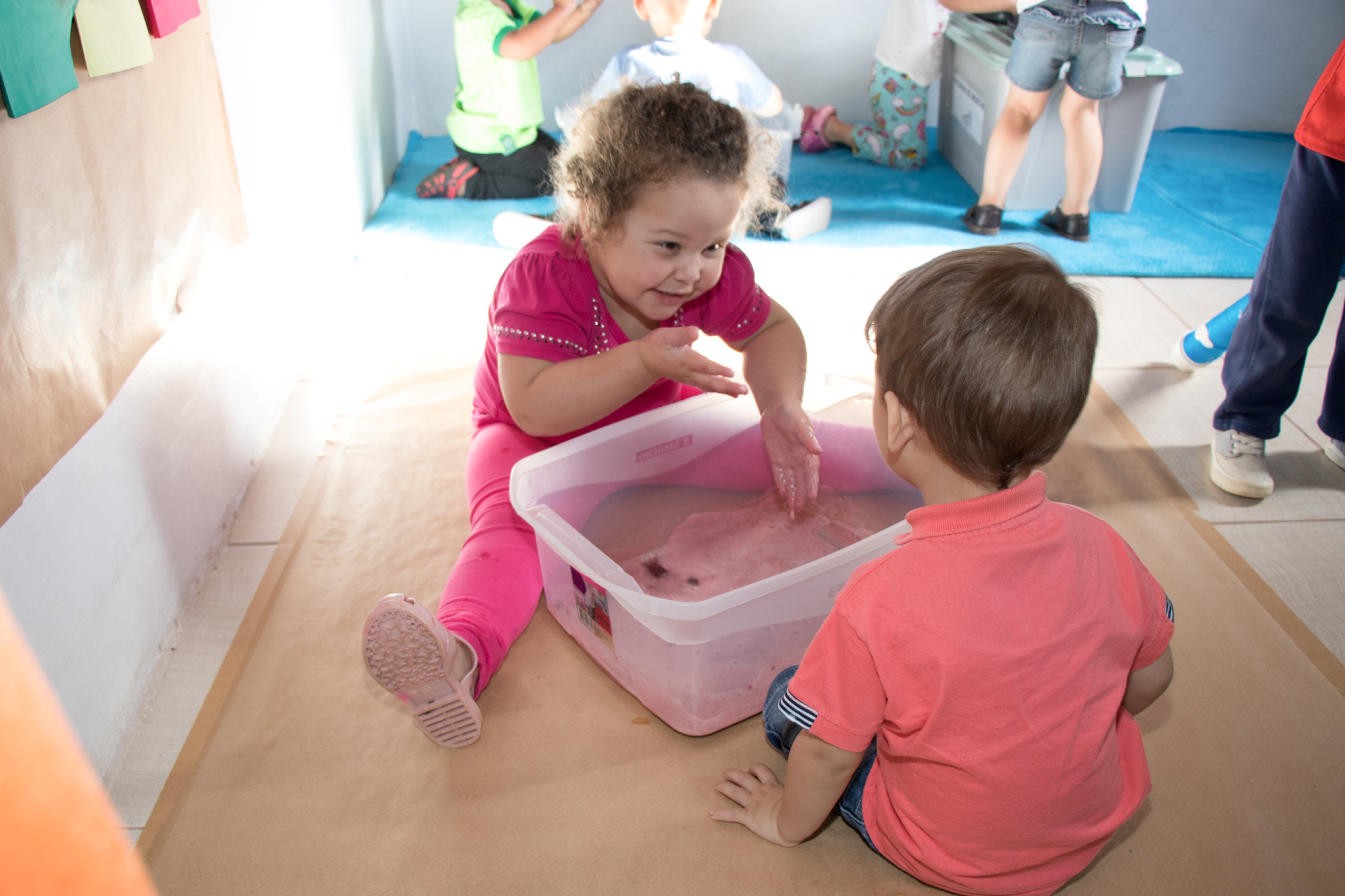 Nesta fase, as crianças estão descobrindo o mundo e seus significados através das diferentes sensações e estímulos que surgem: pegar, morder, ouvir e sentir, a criança sente o cheiro, o gosto, a gelado o quente, etc., e por isso é importante que além de sentir todos estes estímulos, possa compreender e conceituar as diferentes funções de seu corpo que efetivam este sentir, proporcionado pelos mais diversificados estímulos Através de roda de conversas e histórias infantis relacionadas ao tema, as crianças tiveram atividades práticas como: escurecer a sala e entregar uma lanterna para que as crianças brincassem no escuro, utilizar binóculo e lupapara ver pássaros e arvores etc...