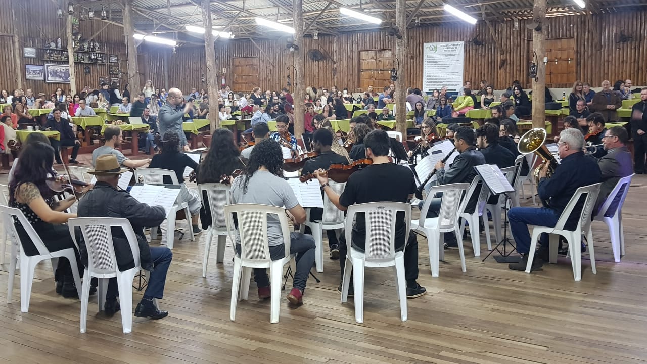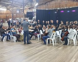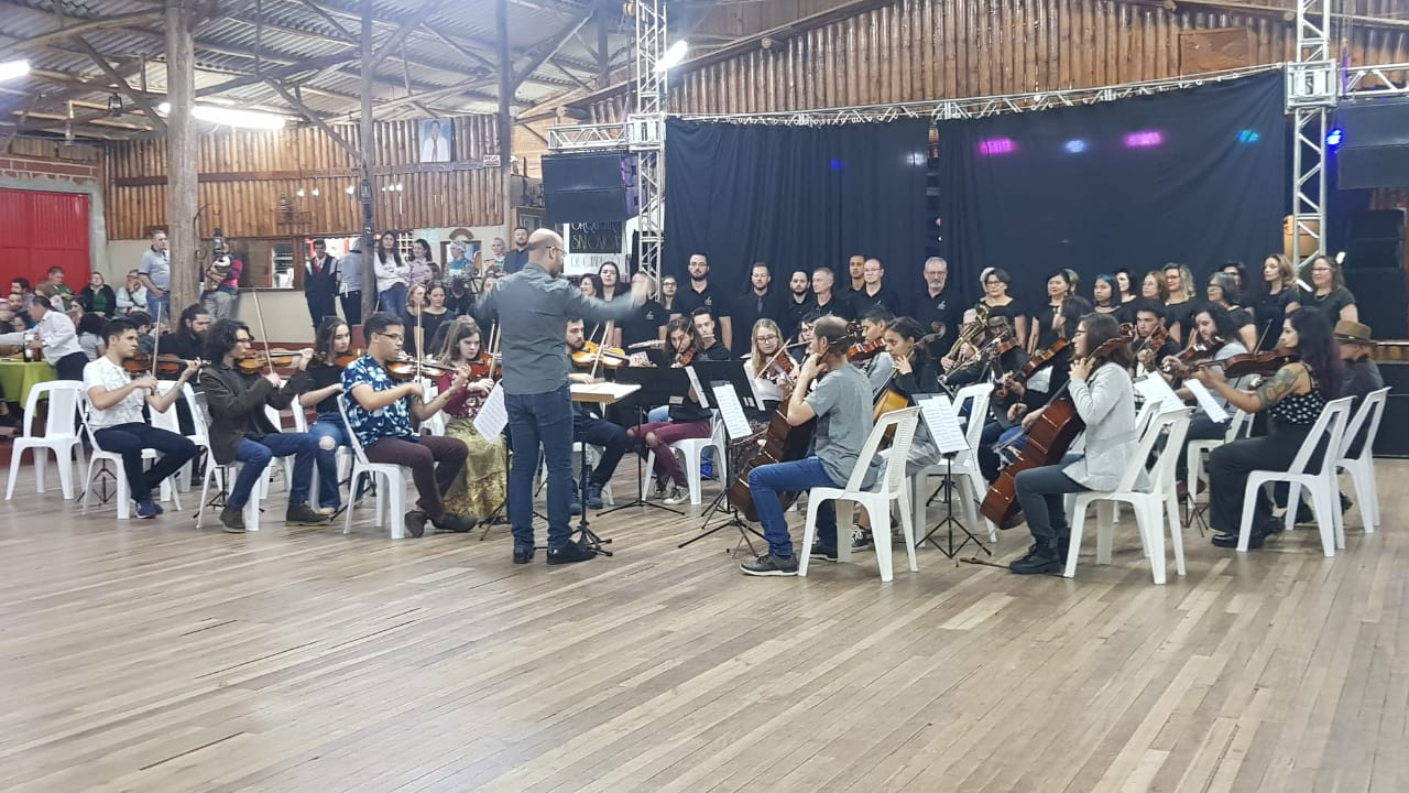 Chapecó, 23/09/2019, segunda-feira A Orquestra Sinfônica de Chapecó completou 10 anos com uma jantar de comemoração que aconteceu no sábado (21) no CTG Coxilha do Quero Quero. Na programação teve apresentação do Coro e da Orquestra e homenagem aos componentes envolvidos na concretização do projeto nestes dez anos.A Orquestra começou duas atividades em 2009 e atualmente é composta por 40 instrumentistas e 45 cantores. Em formação, há em torno de 500 alunos, nos mais variados instrumentos, com atendimento em várias comunidades e bairros do município.