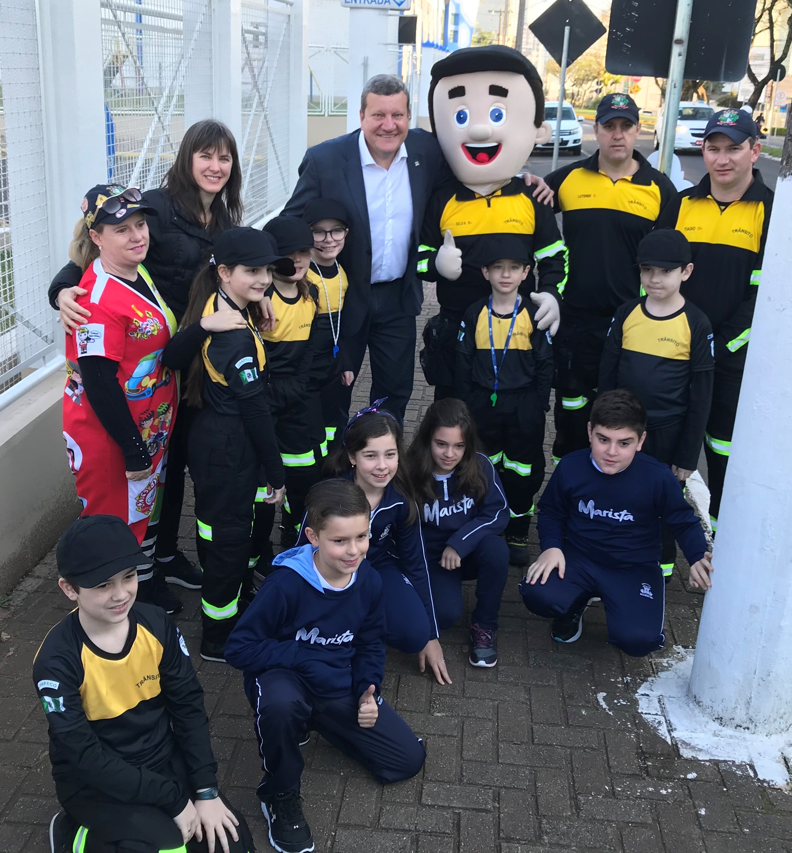 Chapecó, 25/09/2019 - quarta-feira A Administração Municipal, por meio da Secretaria de Defesa do Cidadão e Mobilidade, deu início hoje ao Projeto Agente de Trânsito Mirim. A iniciativa piloto acontece em parceria com o Colégio Marista São Francisco, justamente pelo grande fluxo de veículos registrado nos horários de entrada e saída de alunos no entorno da escola. Com o apoio dos Agentes de Trânsito, cerca de 30 alunos foram capacitados sobre regras e cuidados no uso das faixas de pedestres, vagas de estacionamento e outras condutas que devem ser seguidas no trânsito. Nós queremos a partir deste Projeto gerar responsabilidade social. A ideia é chamar a atenção dos pais para esta responsabilidade, pois no momento em que eu tenho meu filho fazendo a orientação de trânsito, cria também esse efeito psicológico da noção de que eu replico pelo exemplo. A ação auxilia na criação de uma consciência coletiva sobre a construção conjunta de uma cidade mais segura e responsável no trânsito, explica a Secretária de Defesa do Cidadão e Mobilidade, Luciane Stobe.