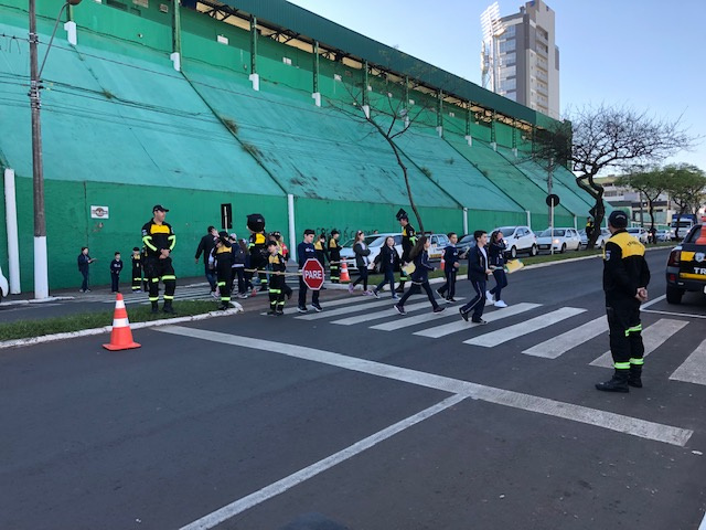 Os estudantes foram capacitados para atuar na orientação do trânsito no entorno da Escola e assim multiplicar a conscientização para um trânsito mais humano e seguro.