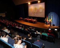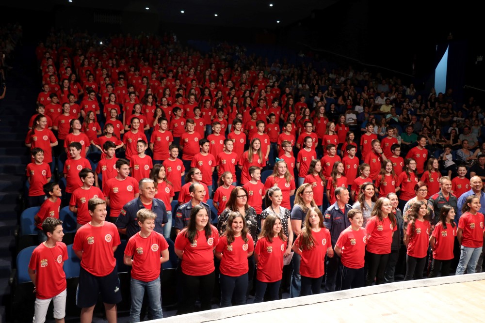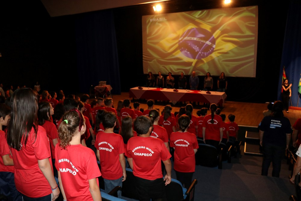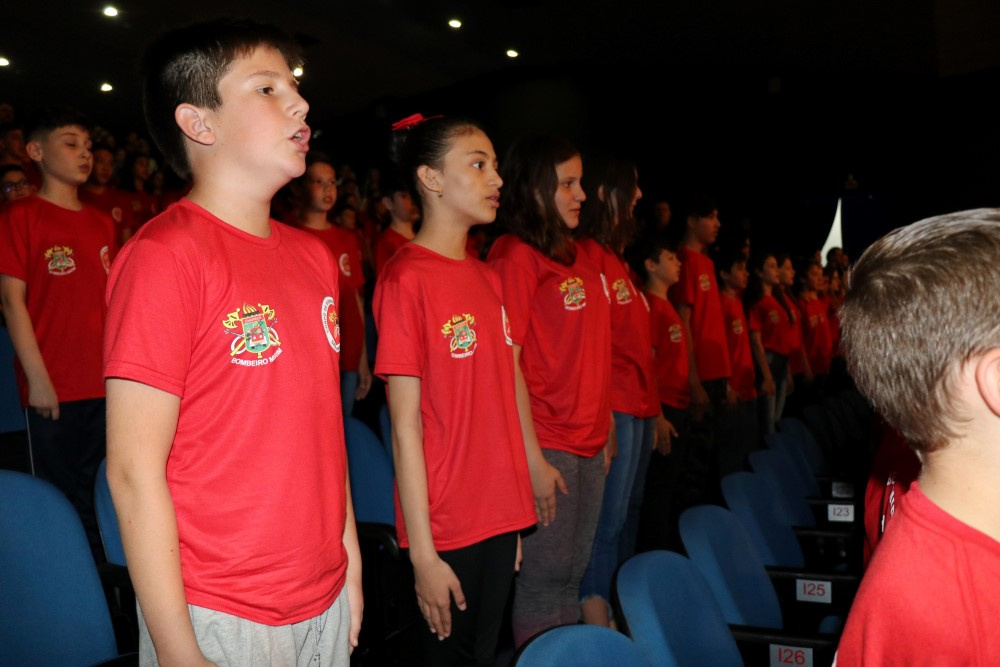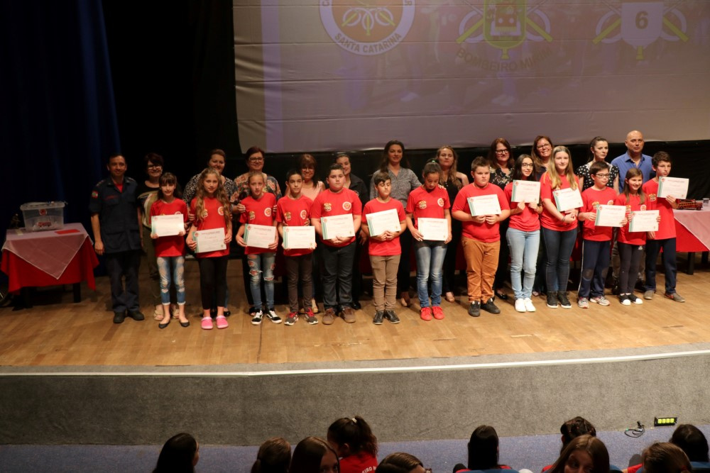 Chapecó, 02/10/2019, quarta-feira 338 crianças da Rede Municipal de Ensino foram formadas, na segunda-feira (30) no projeto Bombeiro Mirim, em uma atividade que aconteceu no Centro de Cultura e Eventos Plínio Arlindo De Nes. Cerca de 900 pessoas participaram do evento. O projeto é um Programa de Apoio Pedagógico e Complementação Educacional, promovido pelo Corpo de Bombeiros Militar de Santa Catarina em parceria com a Secretaria de Educação de Chapecó. Ele é desenvolvido com os alunos do 6º ano das Escolas Municipais e tem por objetivo promover orientação vocacional, capacitação dos alunos, apresentação e motivação de valores, tais como, a disciplina individual e coletiva, a responsabilidade, o respeito a todos os seres vivos/natureza e a prática da solidariedade.