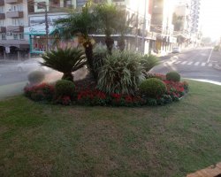 - Ajardinamento, plantio de grama e flores nos canteiros e rótulas localizadas no acesso ao