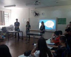 Chapecó, 14/10/2019, segunda-feira O Centro de Referência em Saúde do Trabalhador - CEREST Regional de Chapecó realizou ação educativa em duas escolas de Chapecó: Escola Básica Municipal Agropecuária Demétrio Baldissarelli e Alípio José da Rosa, para escolares do 8ª ano. Participaram da atividade 51 escolares. Nesta primeira etapa do projeto, os escolares refletiram sobre o mundo do trabalho, exposição aos riscos, saúde e segurança do trabalho no ambiente rural. O projeto terá continuidade no primeiro semestre de 2020, onde a temática será novamente abordada.